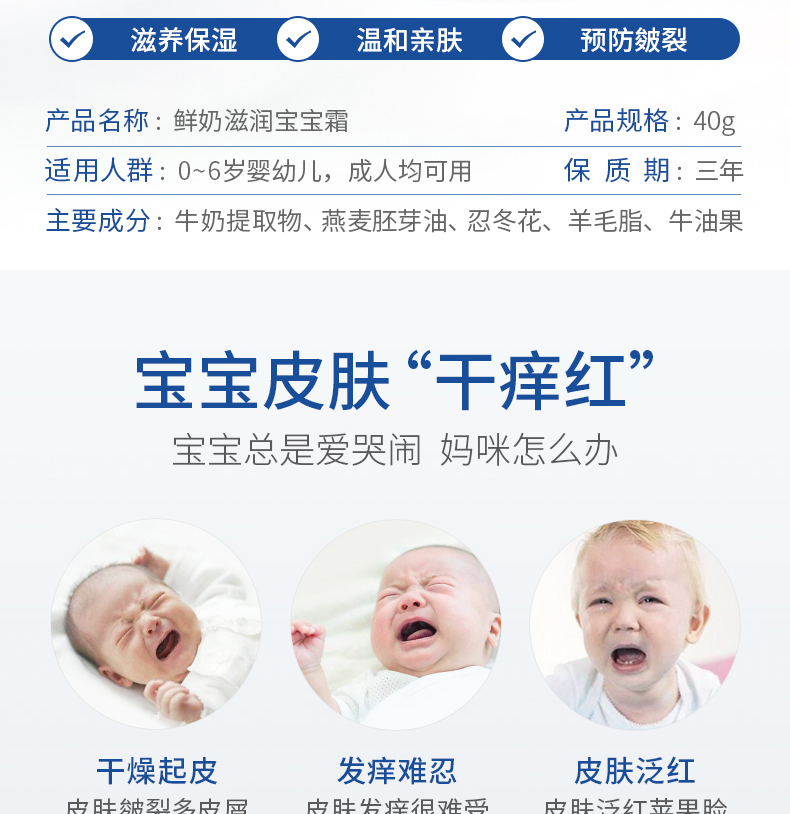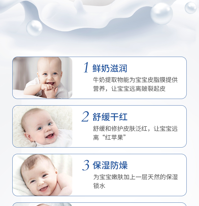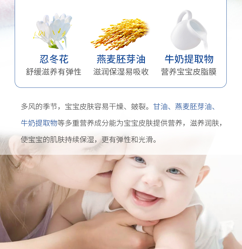 天然植物精华,温和不刺激,锁水保湿,秋季刚需!专为婴幼儿精心研制,严格质检,呵护宝宝娇嫩敏感肌~