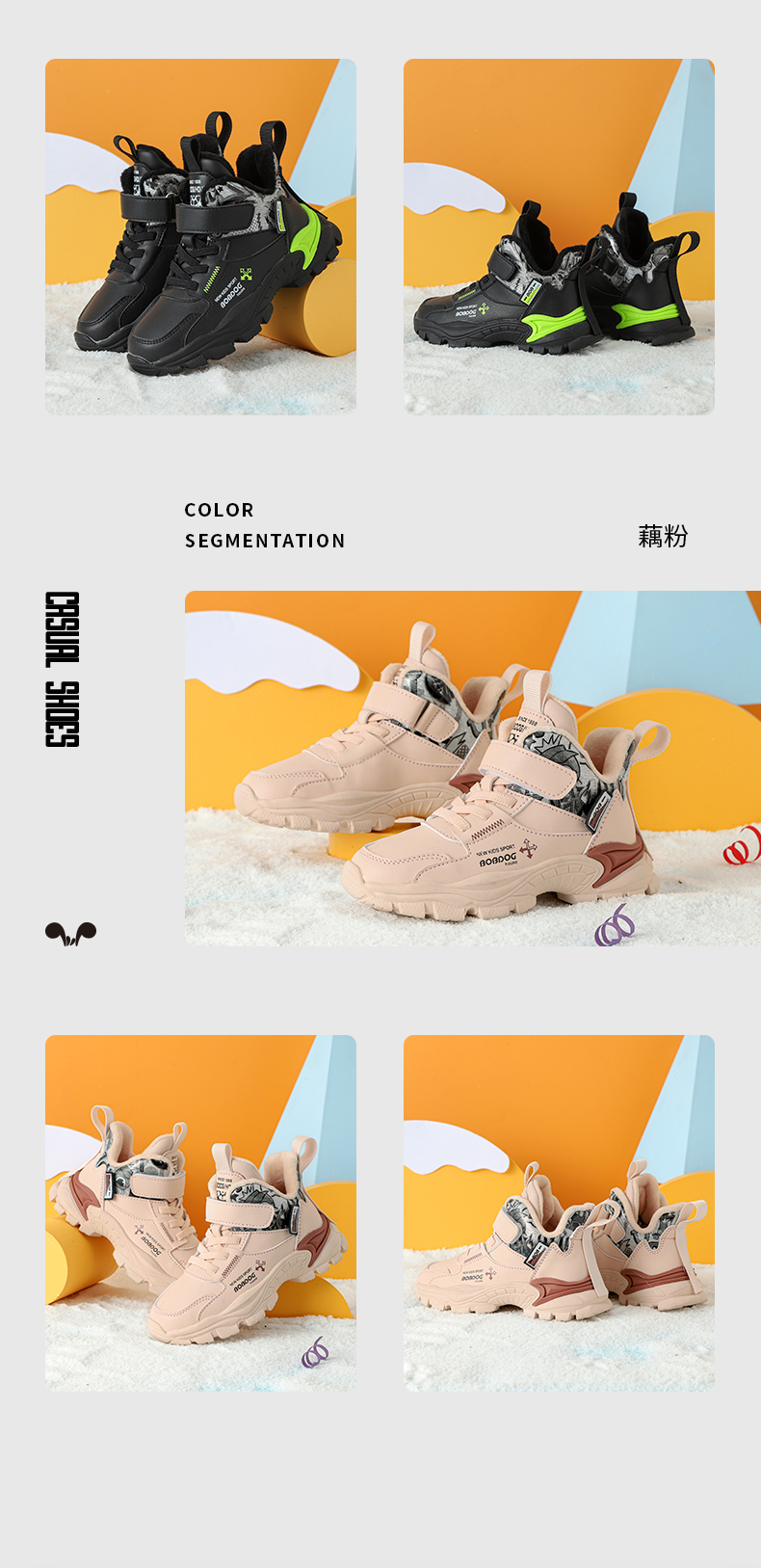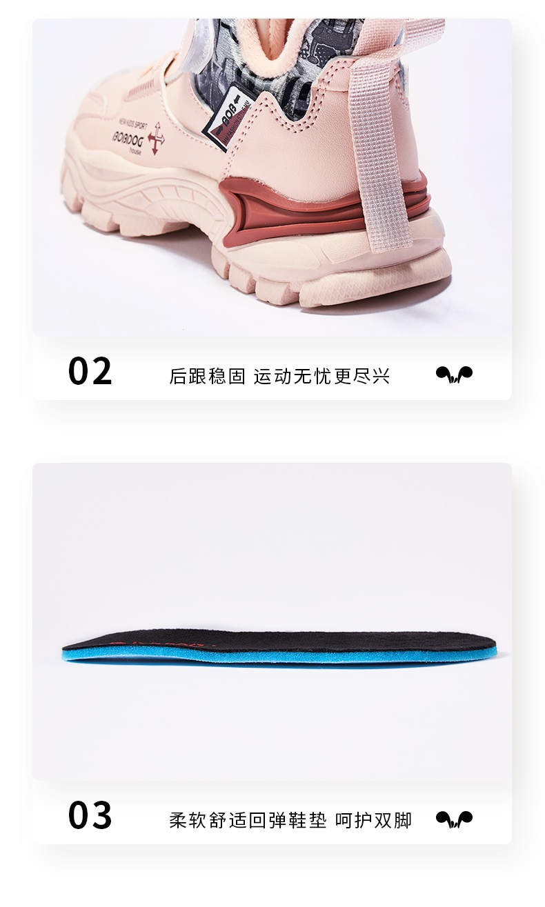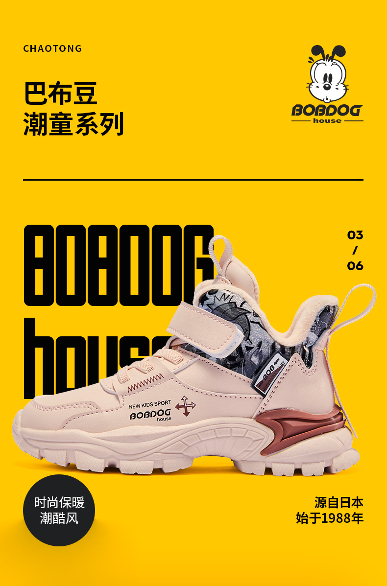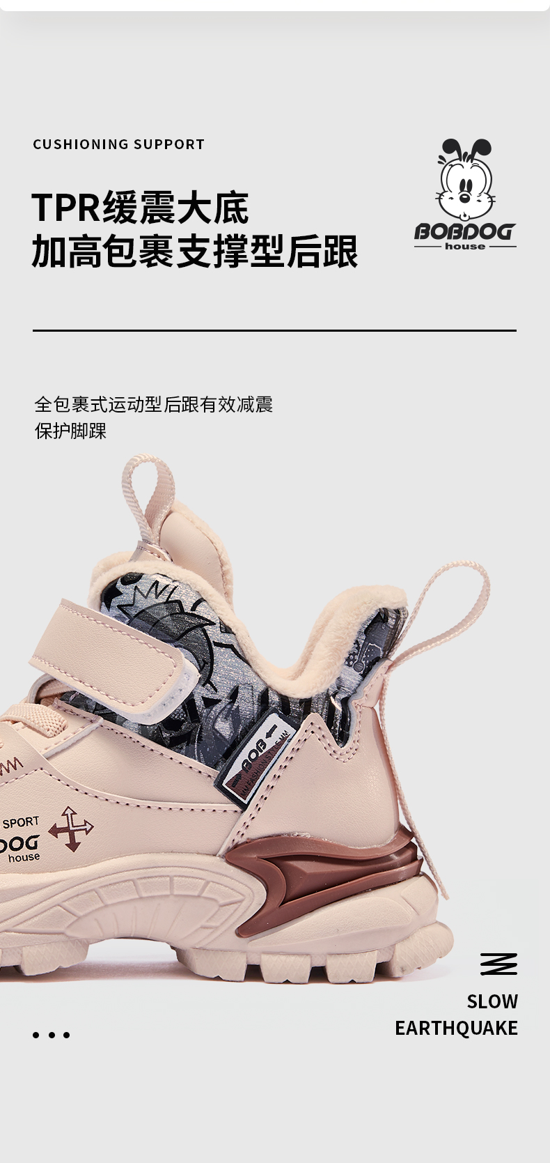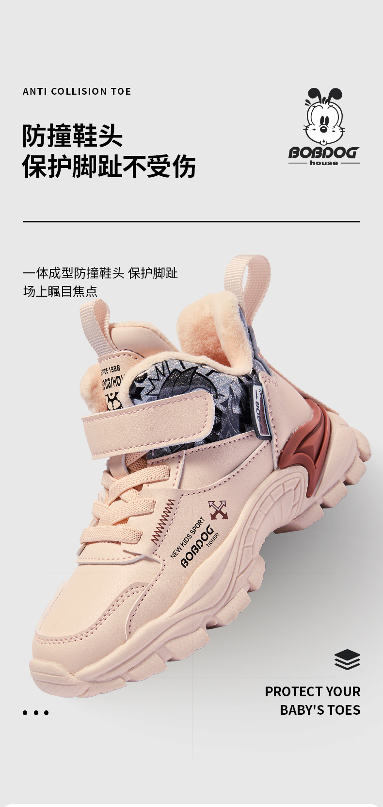 巴布豆童鞋秋冬款儿童二棉鞋加绒男童鞋子女童运动鞋冬季加厚棉鞋