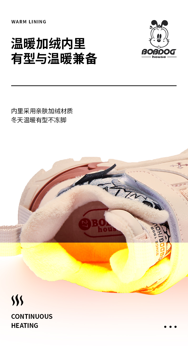 【专柜同款卖399!!】保暖加绒内里,触感柔和,给宝宝双脚贴心呵护,加固后跟,贴合脚踝,防撞鞋头设计,保护宝贝脚趾,防滑鞋底,轻便舒适,宝贝冬天行走更加自信更加保暖!