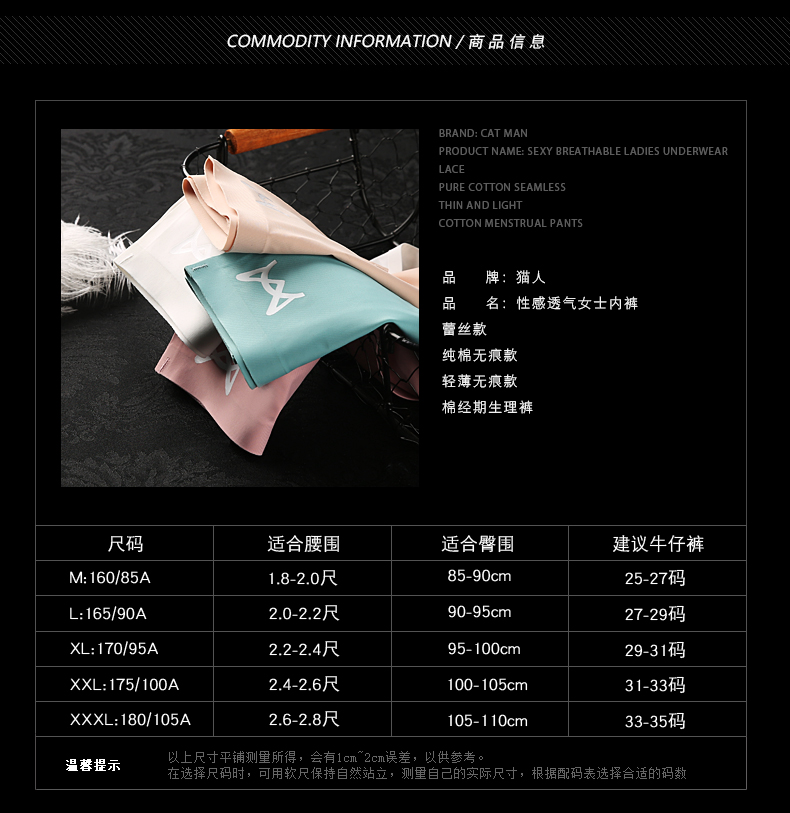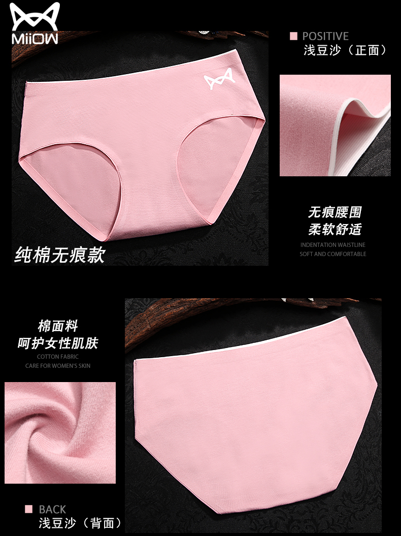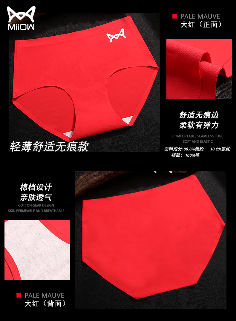 猫人 纯棉内裤无痕少女中腰学生大红色本命年新款三角防漏生理裤