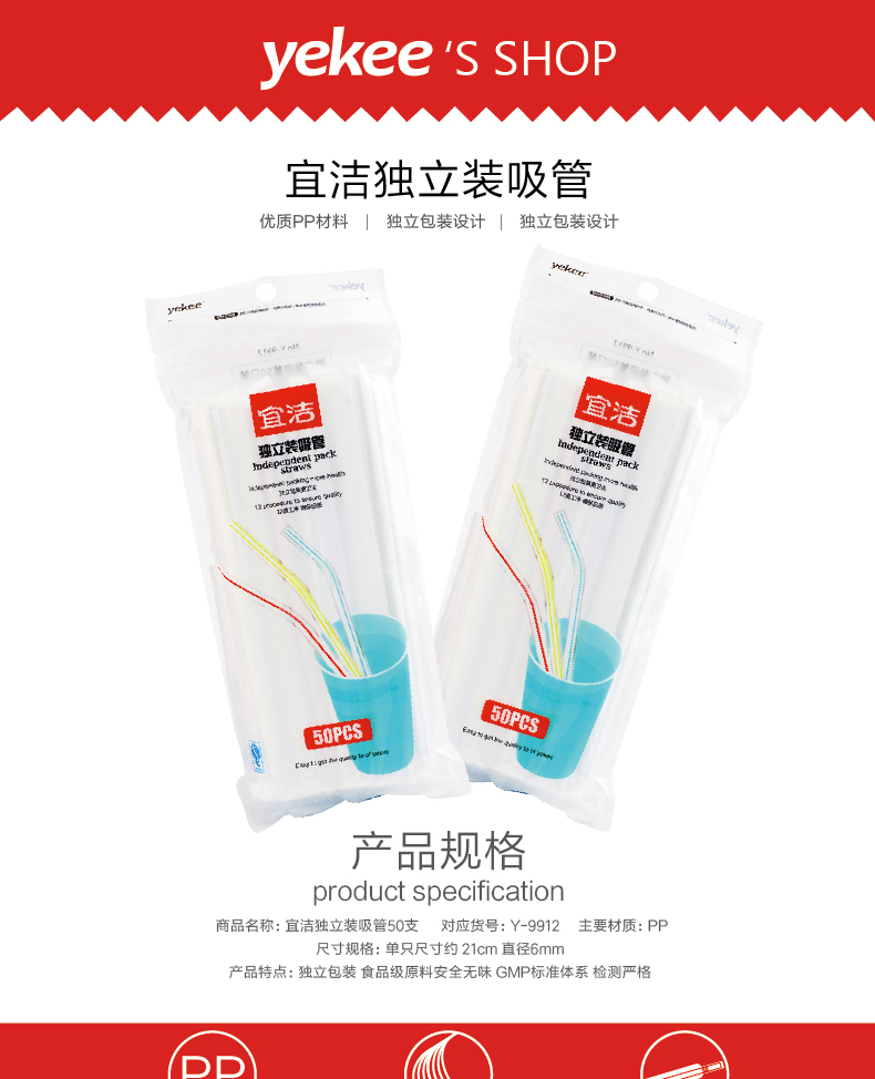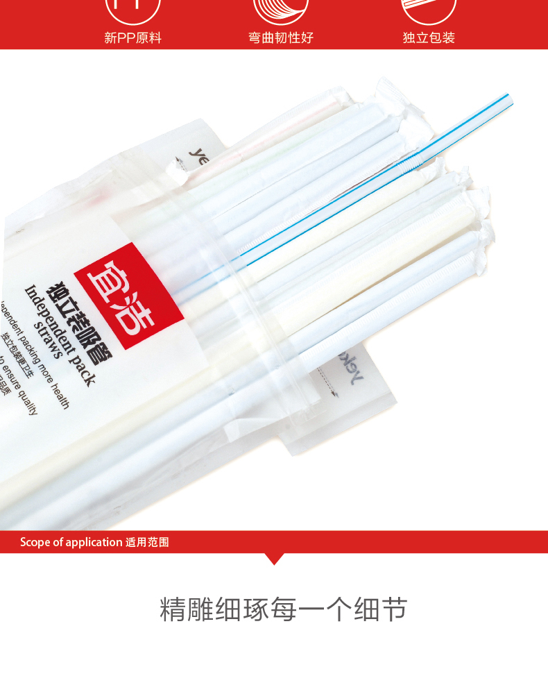 宜洁一次性吸管50只独立包装,食品级原料安全无味,管体可弯曲,耐冷耐高温,12道工序,品质好到没朋友!