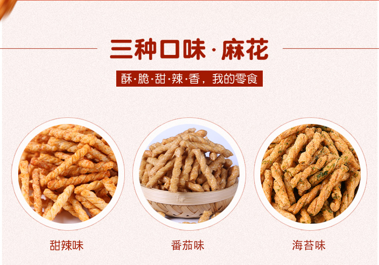 津喜猴手工小麻花200gx3袋装多口味网红小辫散装批发休闲零食