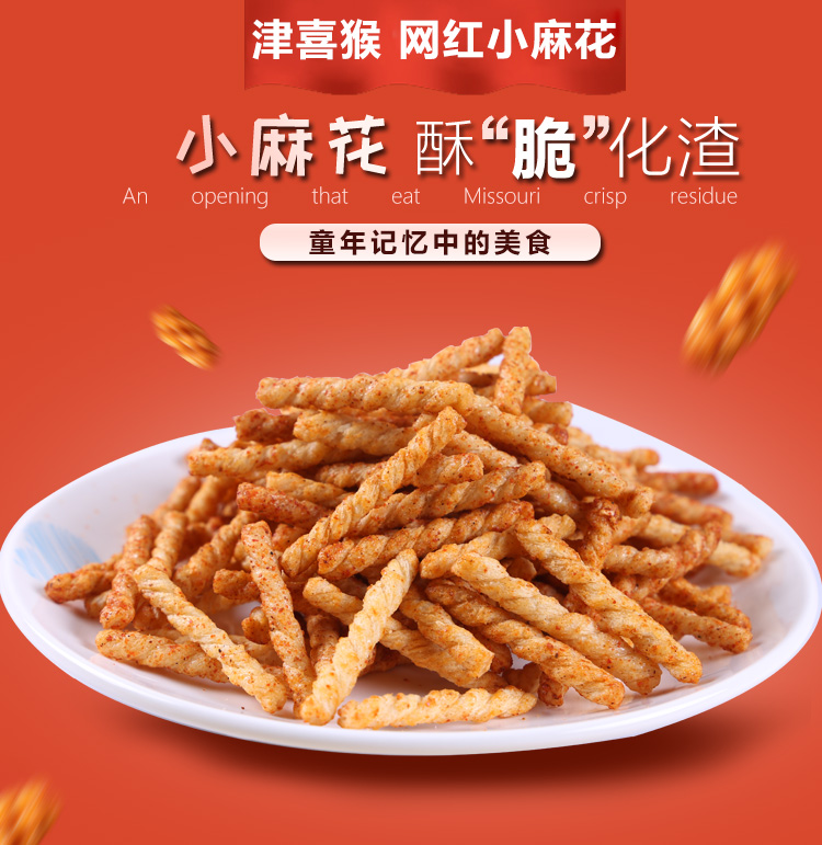 津喜猴网红手工小麻花,精选优质健康原料,口感酥脆,唇齿留香,好吃不腻,味蕾清新感受,多种口味,百吃不厌,正规厂家生产,好吃看的见!