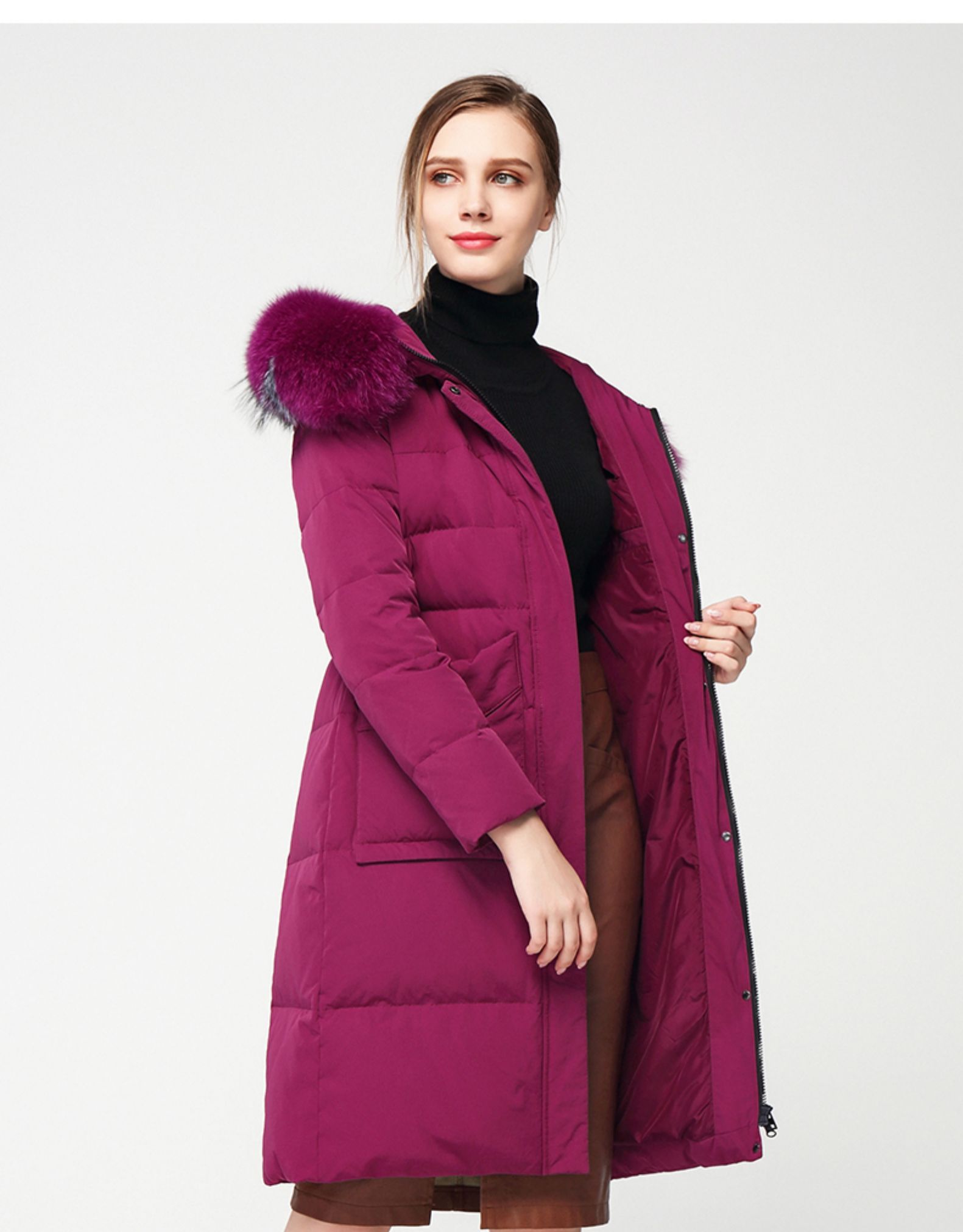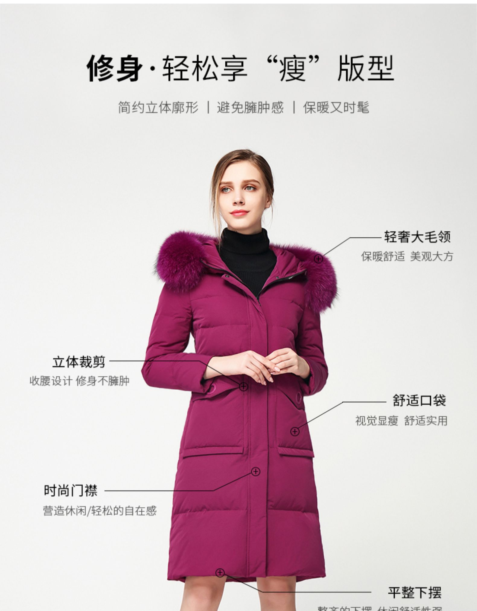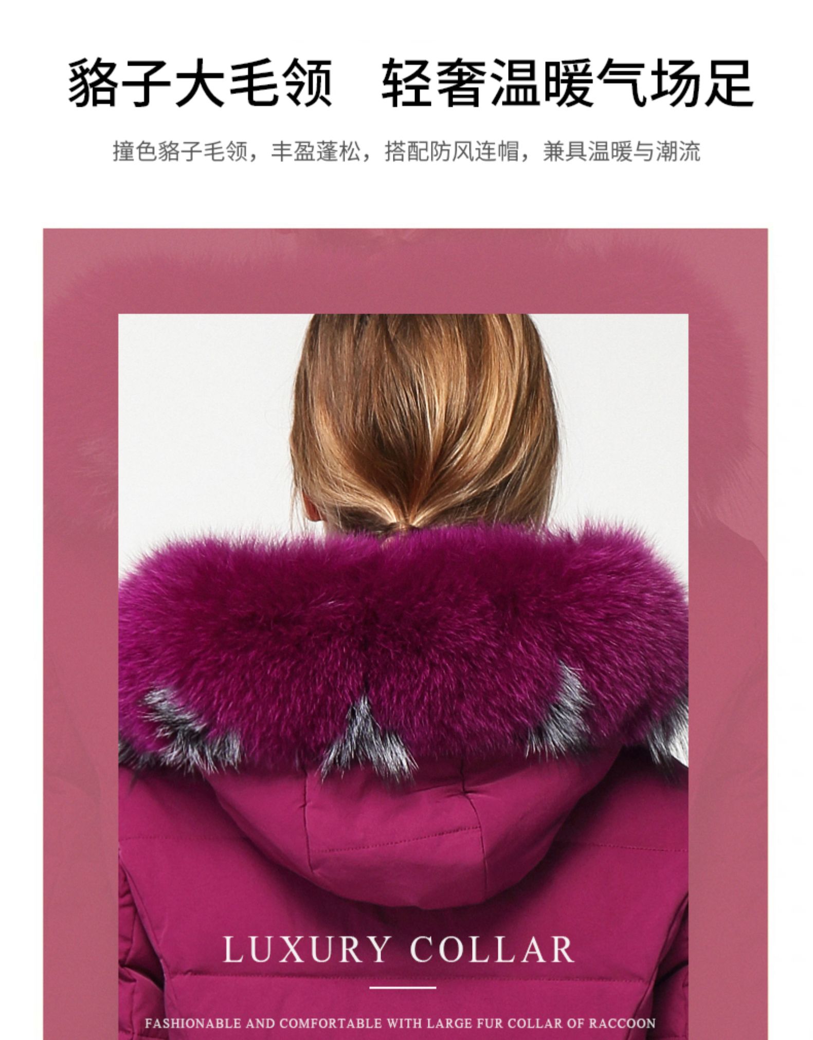 暖频道返季紫色羽绒服女中长款清仓加厚羽绒服女保暖收腰修身北方