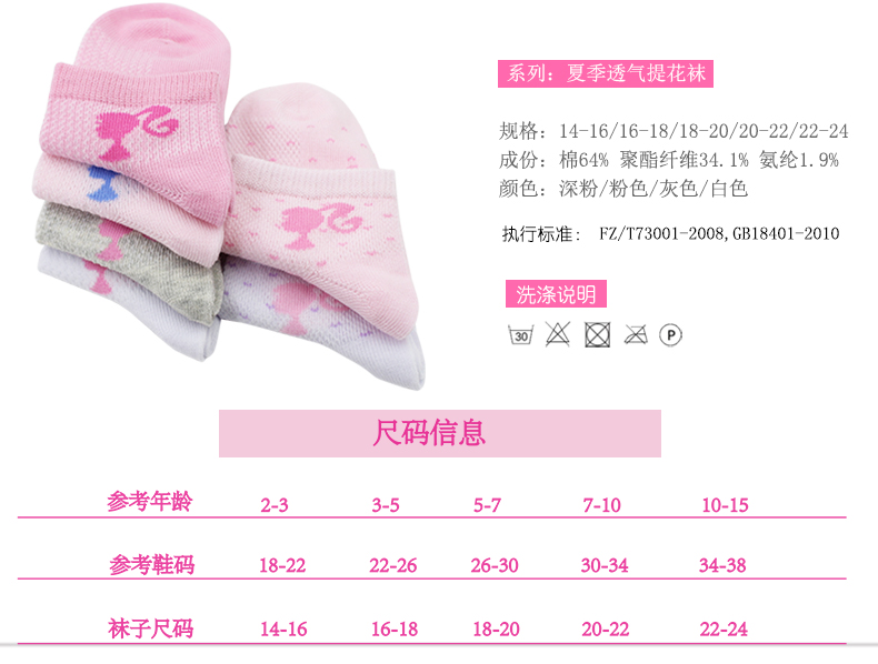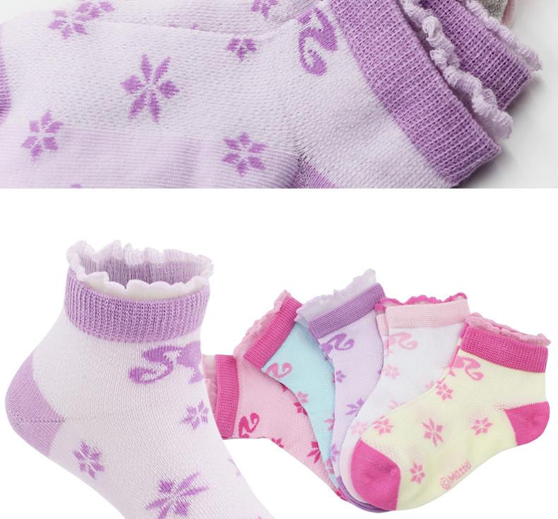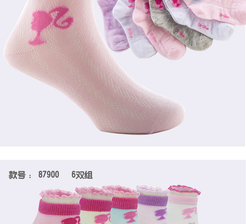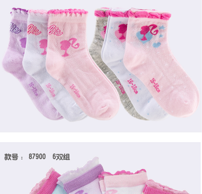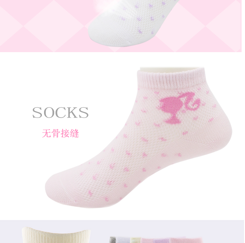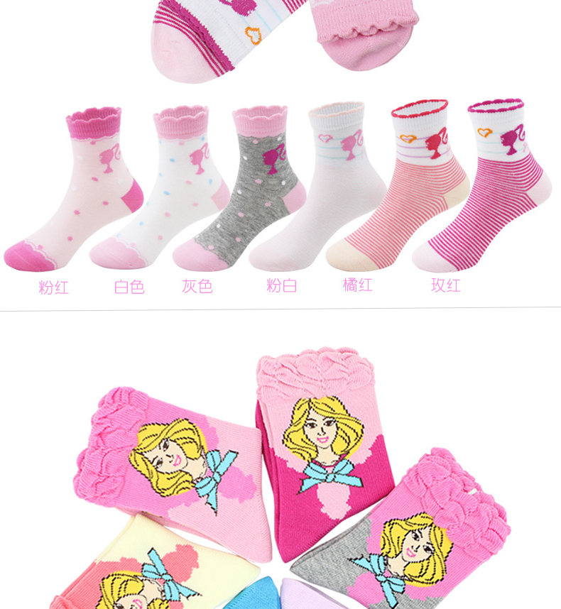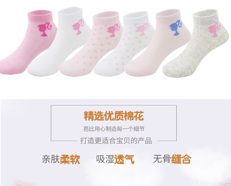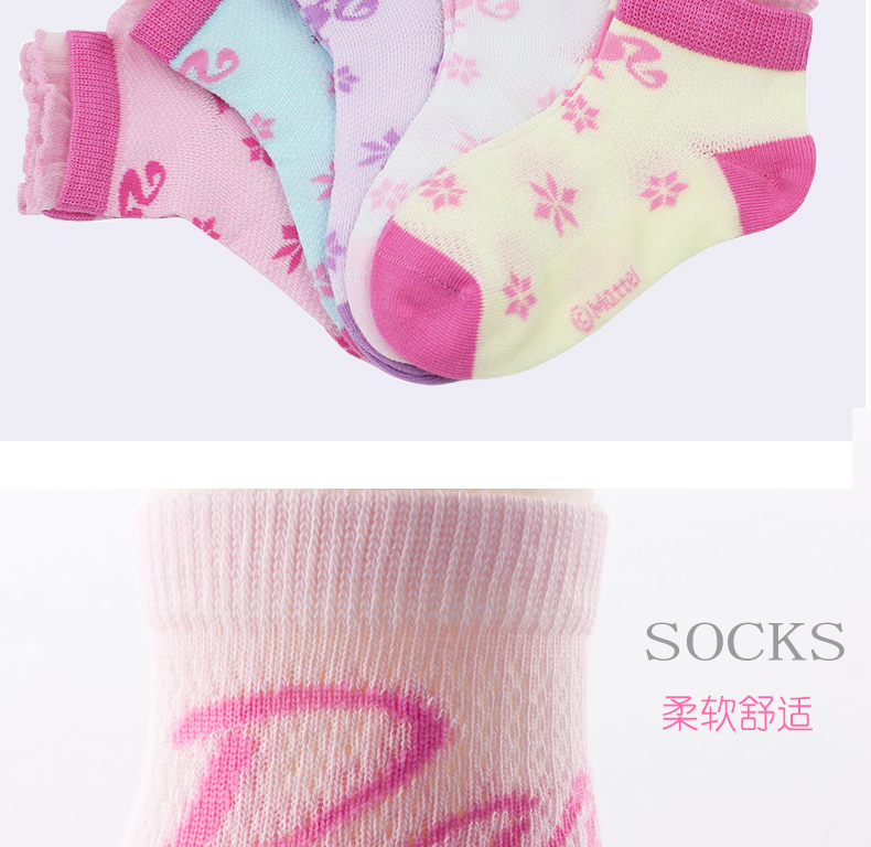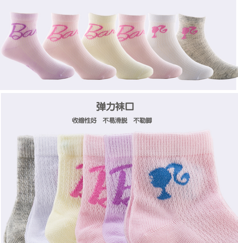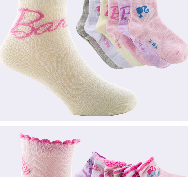 【芭比,超值5双装】适合2-15岁宝宝穿的袜子,舒适透气,内部无骨缝合不硌脚,艳丽色彩,弹力好,透气吸汗,不仅呵护宝宝肌肤,更是专注做宝宝的第二肌肤,让宝妈们放心购!