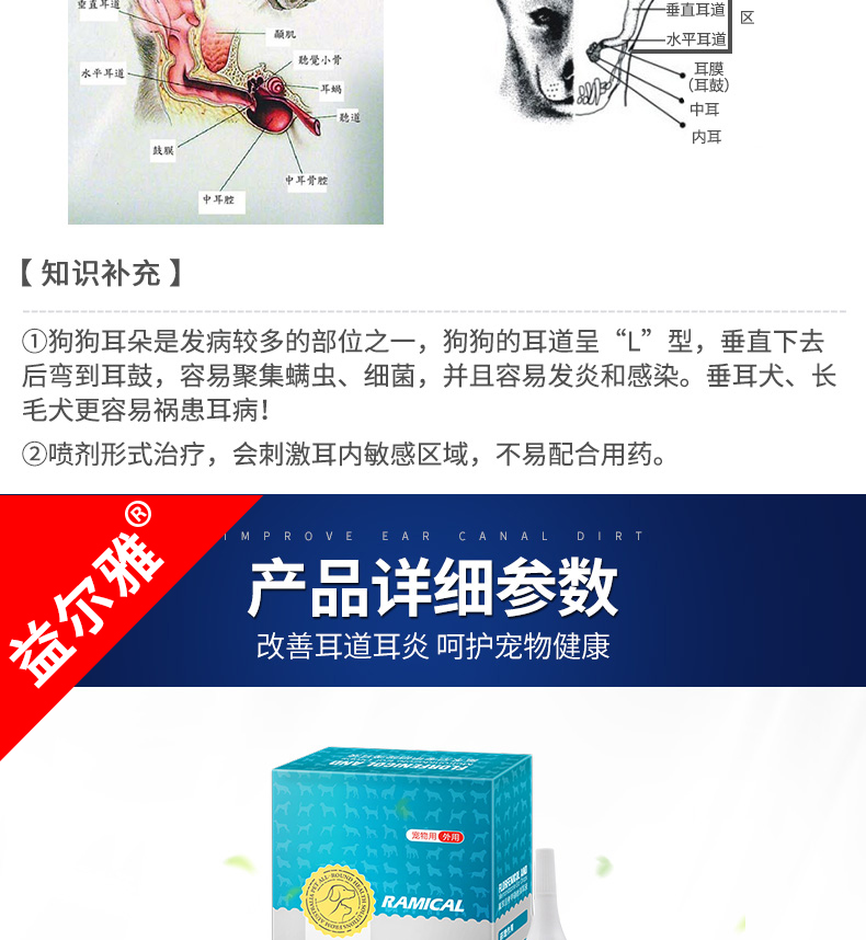雷米高狗狗滴耳液洗耳洁耳猫咪除耳螨猫用狗用猫耳螨宠物清洁用品