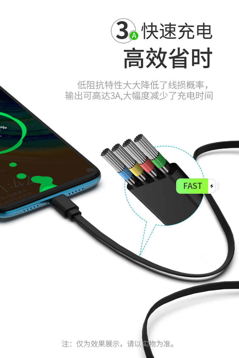 【罗马仕旗舰店品质】2.1A快速充电,兼容多种设备,电流稳定传输,优质纯铜芯线,提速80%,实现快充真提速,经过严格测试,安全耐用。