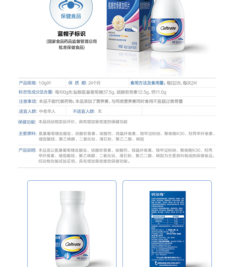 钙尔奇氨糖软骨素加钙碳酸钙40片中老年人钙片增加骨密度腿抽筋