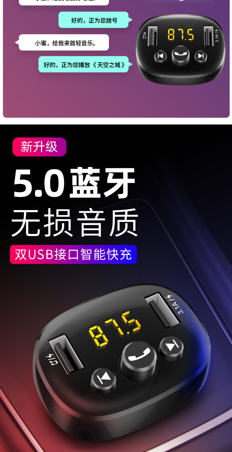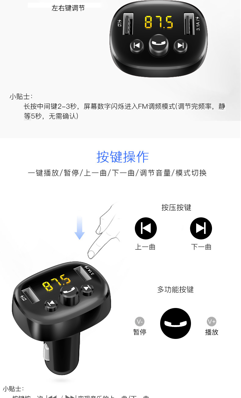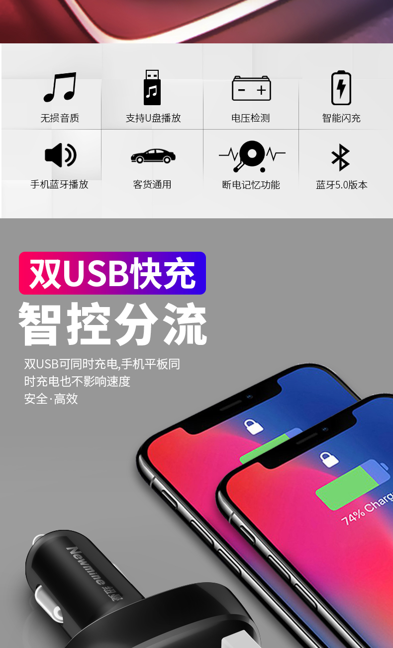 纽曼车载MP3播放器蓝牙多功能接收器万能通用充电器音乐U盘点烟口