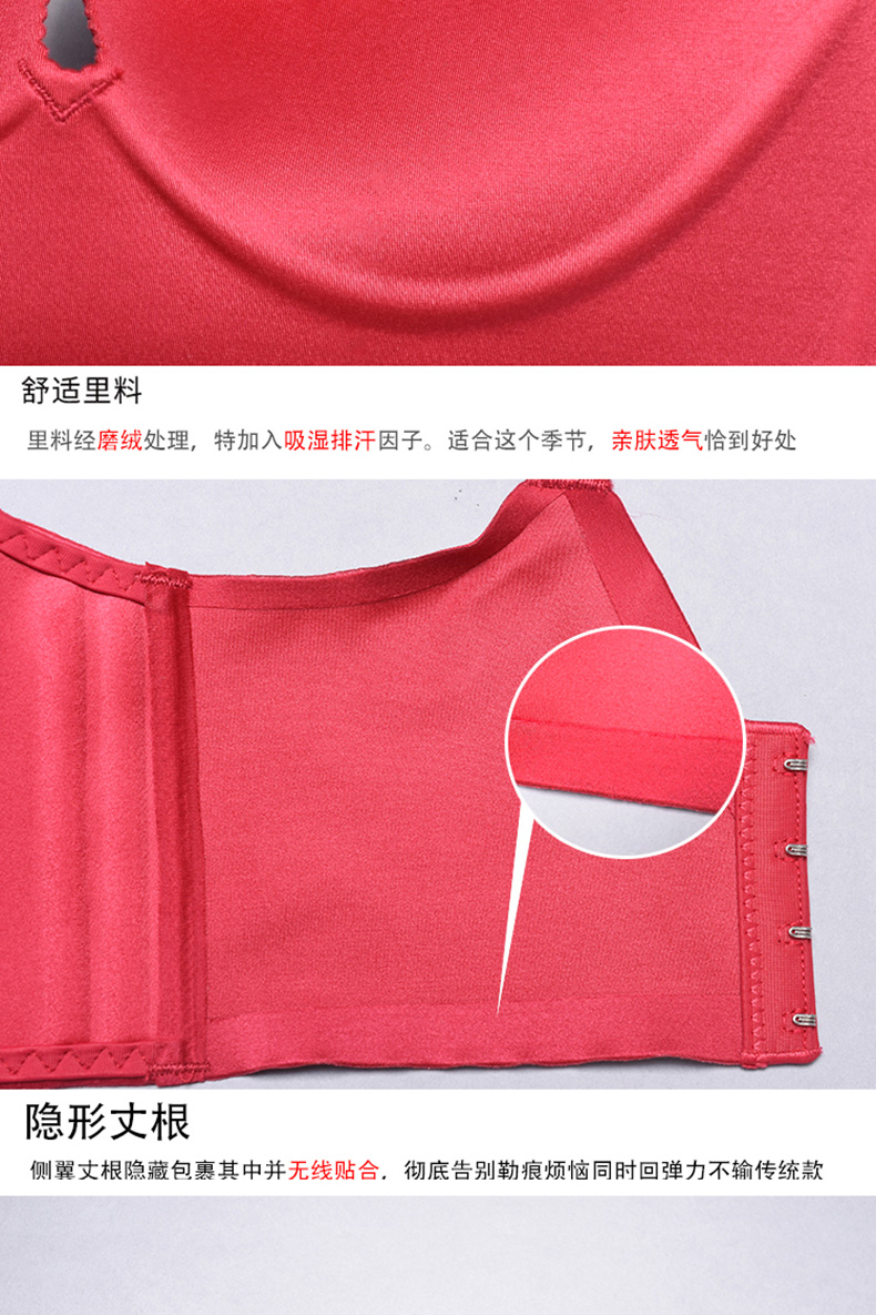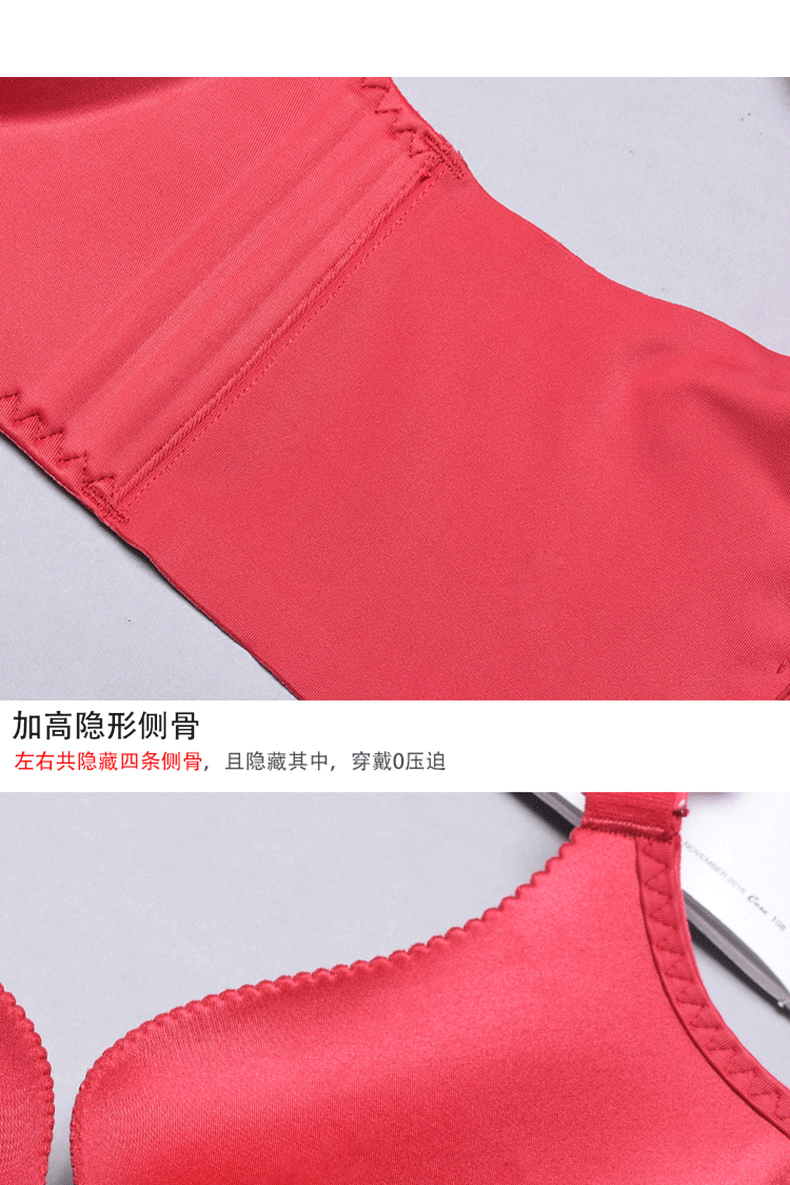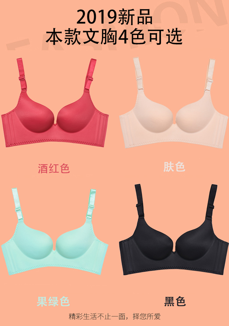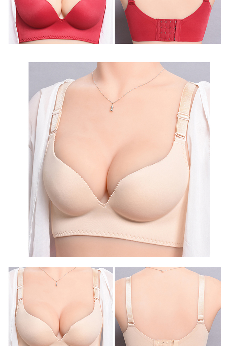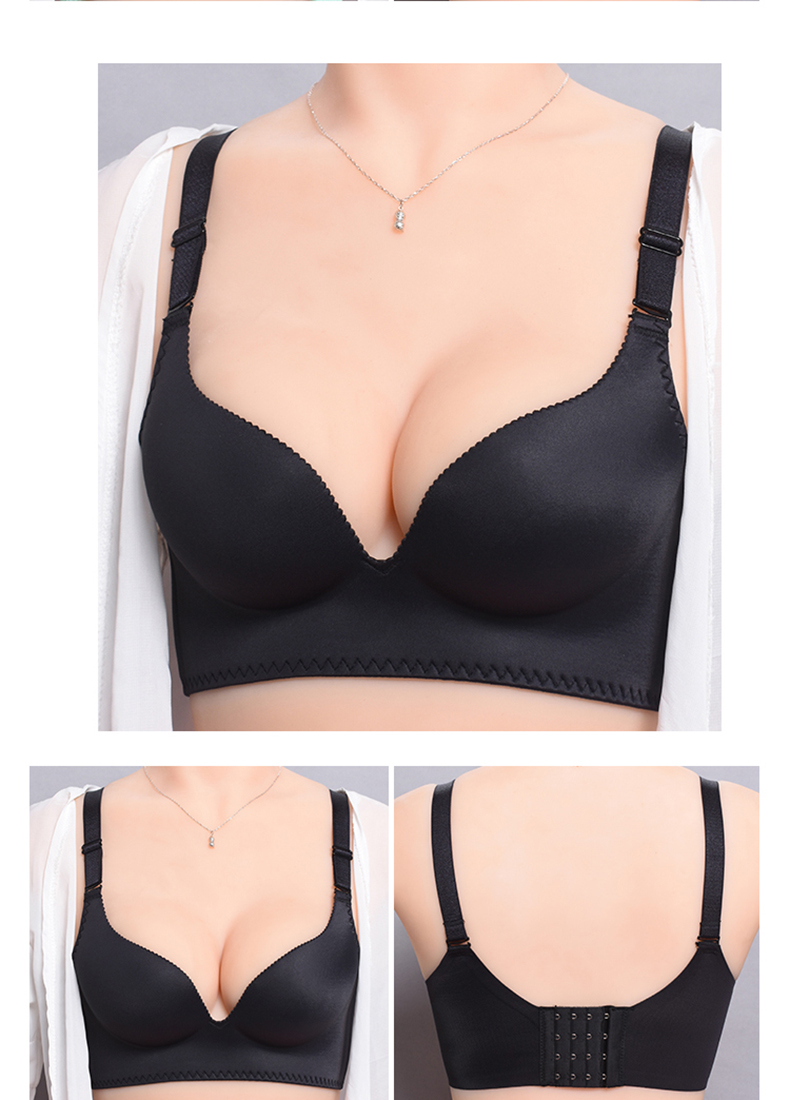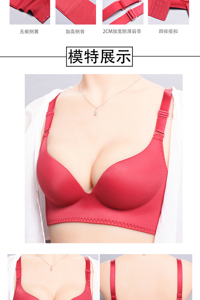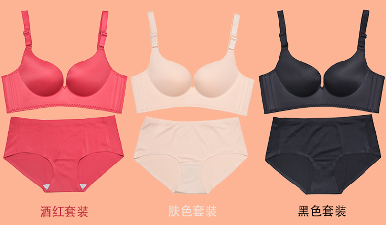 深V无痕简约厚款光面内衣无钢圈调整型薄透气小胸聚拢文胸罩套装
