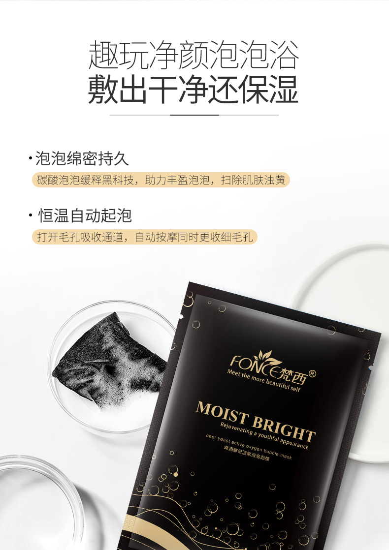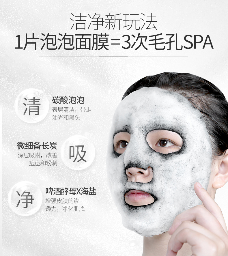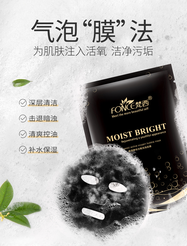 梵西酵母活氧黑海盐泡泡面膜,补水保湿深层清洁黑头收缩毛孔。男女深层洁净,补水保湿收缩毛孔,控油补水。