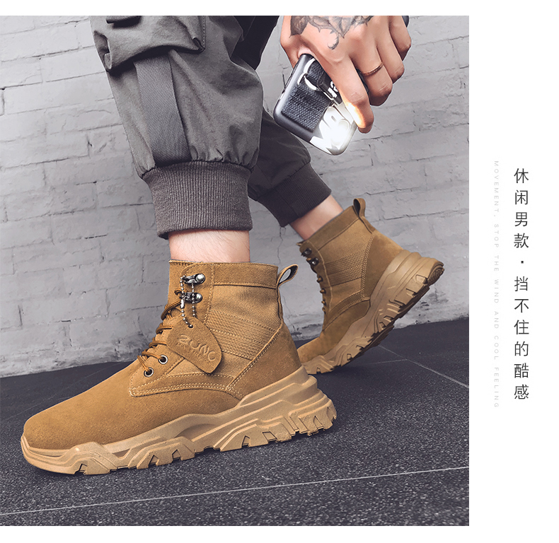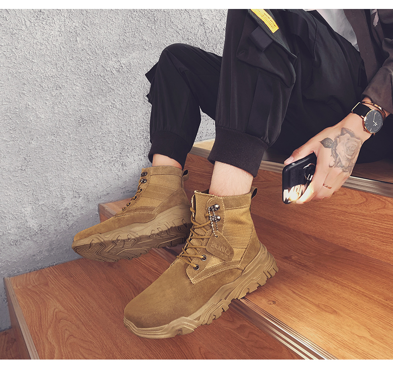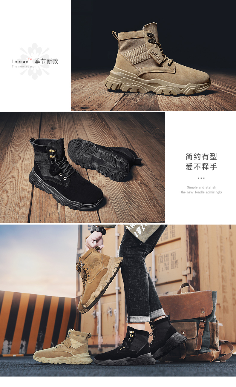 2019冬季马丁靴男高帮工装短靴英伦男靴子户外沙漠靴铆钉潮鞋