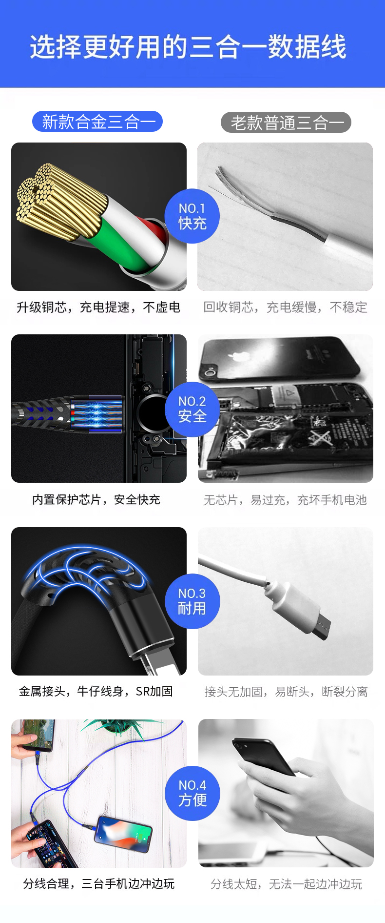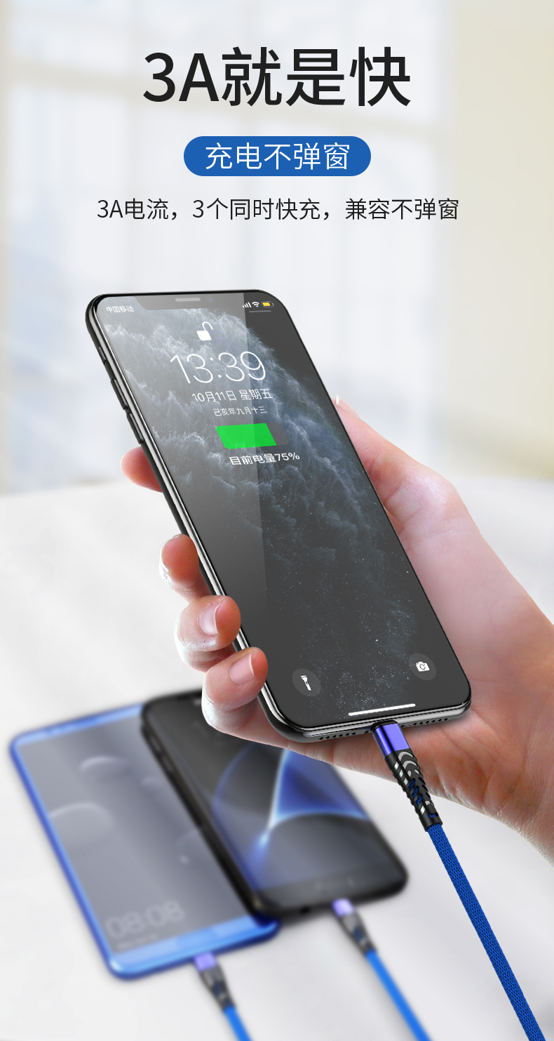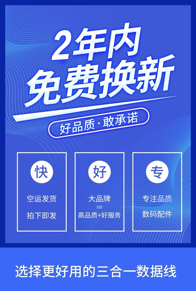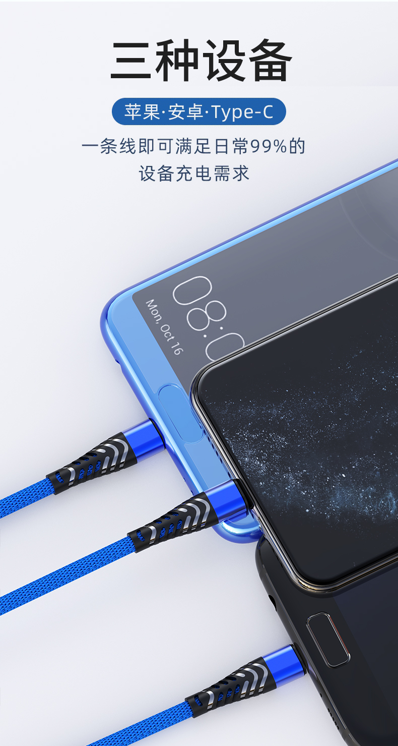 解决多种充电需求,一线多用,安全提速99%,安卓加苹果通用电线,不同接口一次满足,一次性可充多部手机,充电快速,节省时间!【赠运费险】