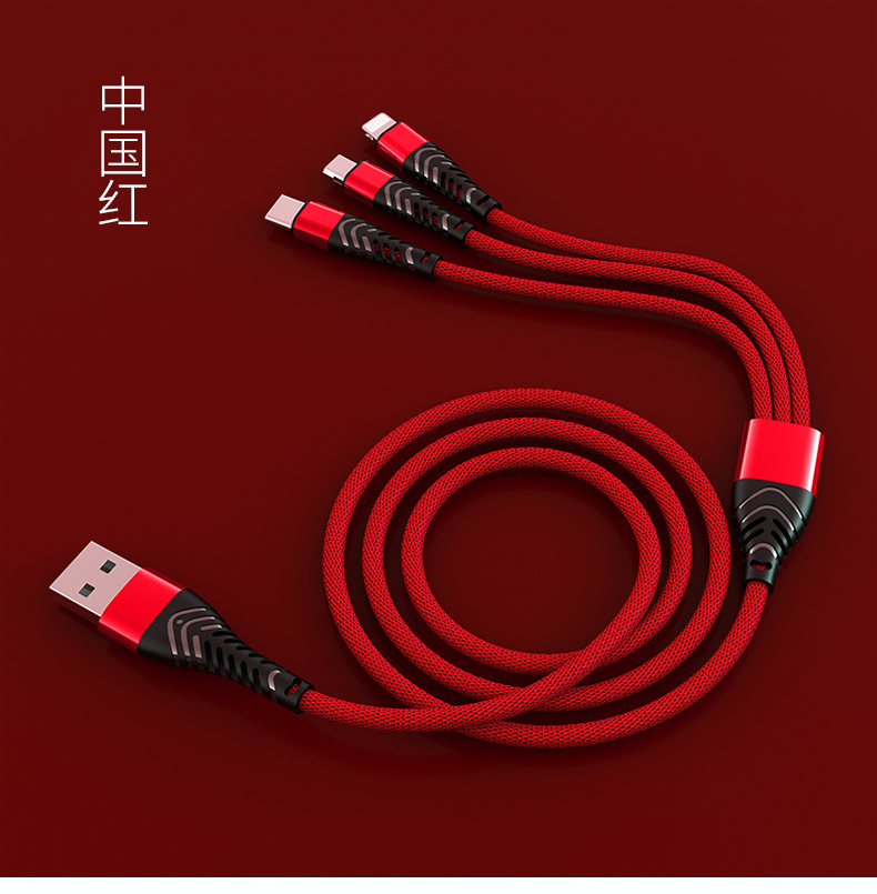 数据线三合一充电线器手机快充一拖三苹果安卓二合type-c三头一拖二万能通用车载多功能华为5a冲加长可橙正品