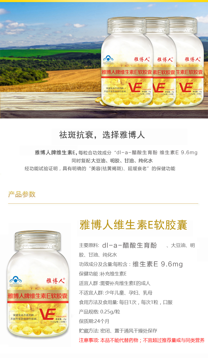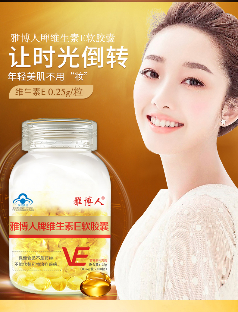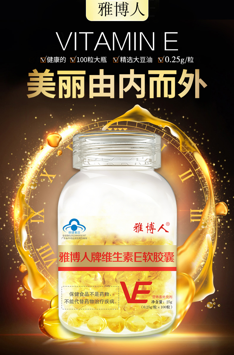 雅博人 天然鱼油维E软胶囊100粒VE内服维生素E涂脸搭配vc