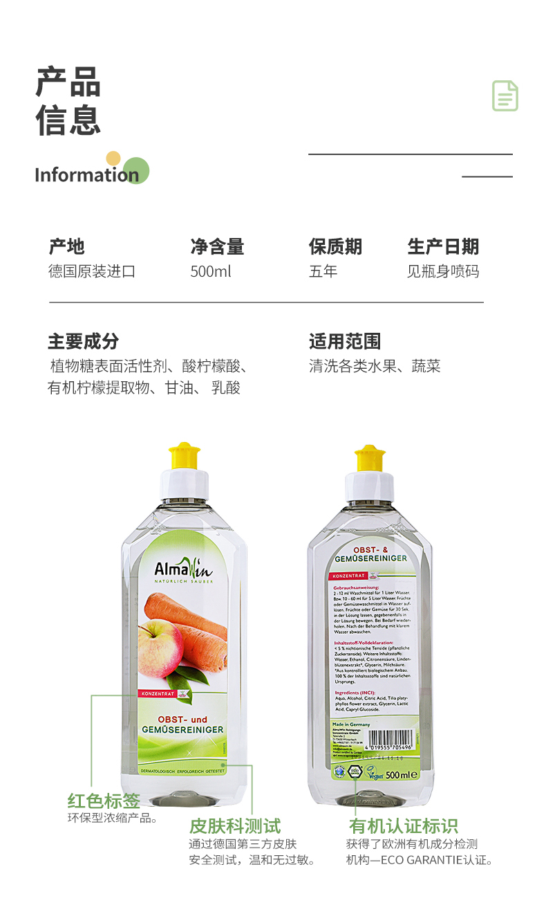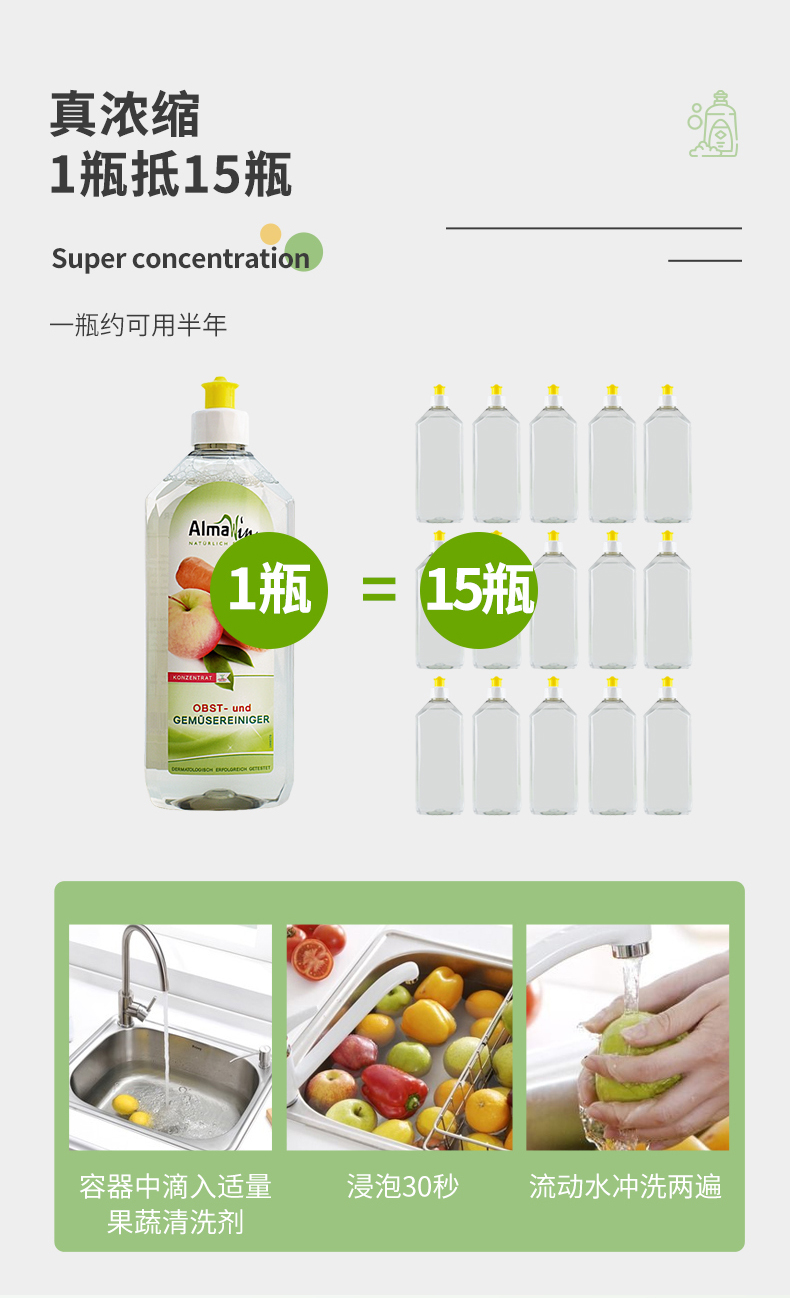 almawin德国进口水果果蔬清洗剂果蔬专用去农残清洗液浓缩果蔬净