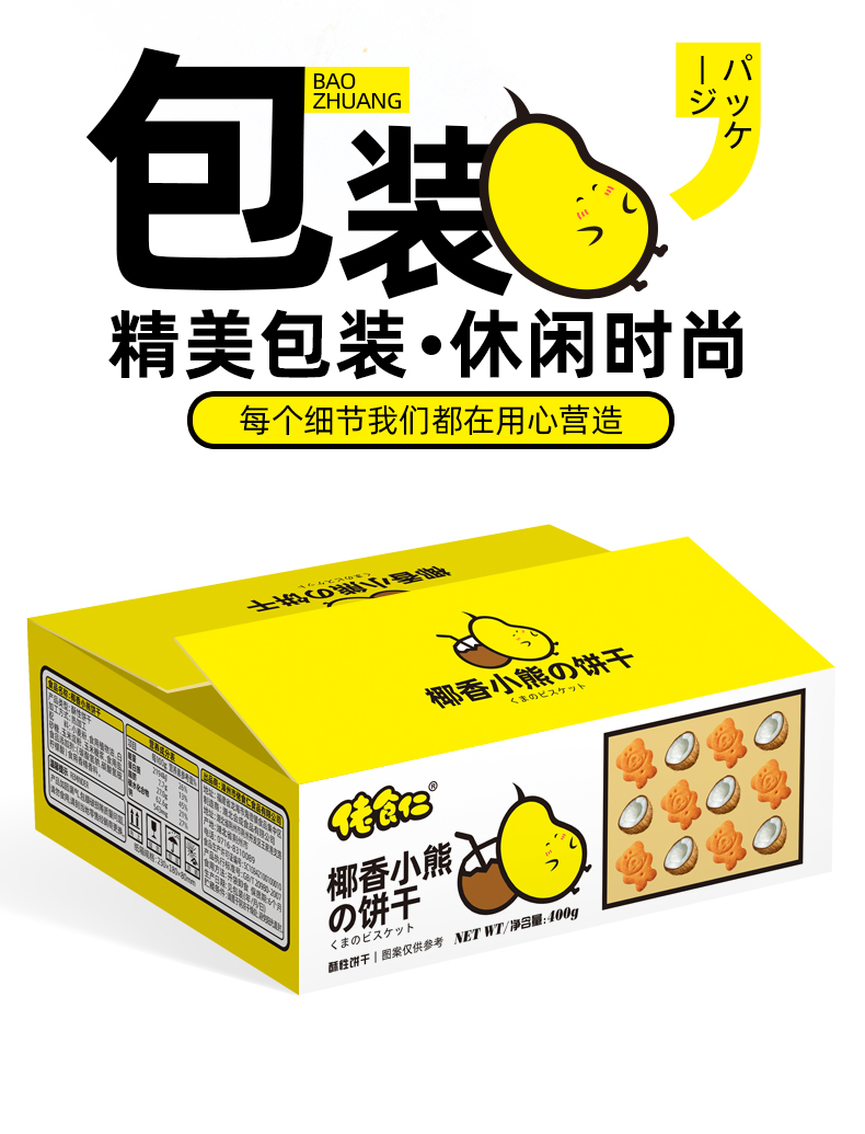 佬食仁椰香小熊饼干400g整箱儿童零食磨牙棒熊字饼动物数字饼干