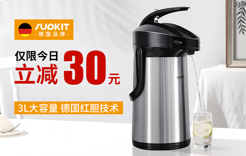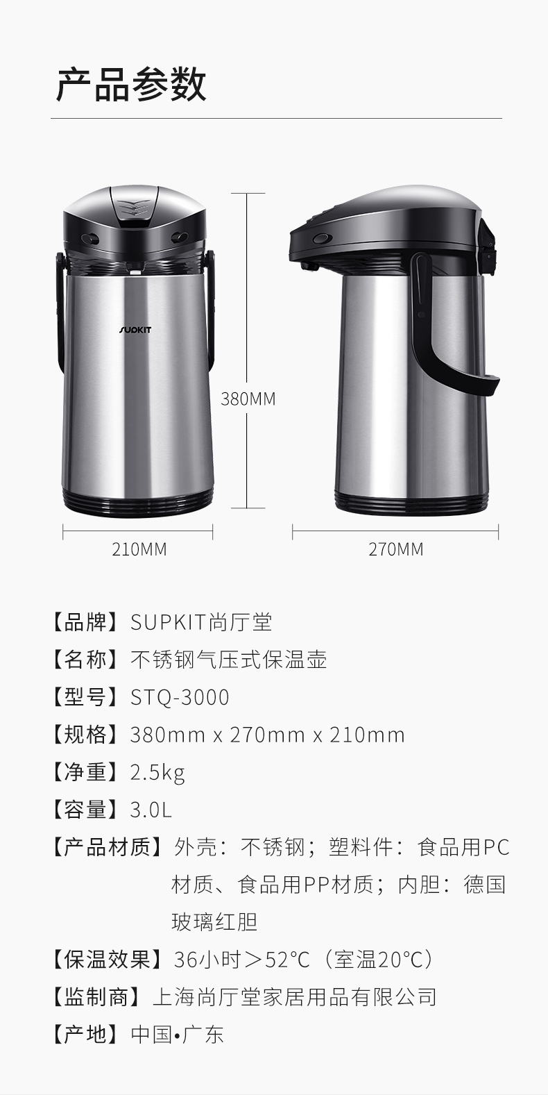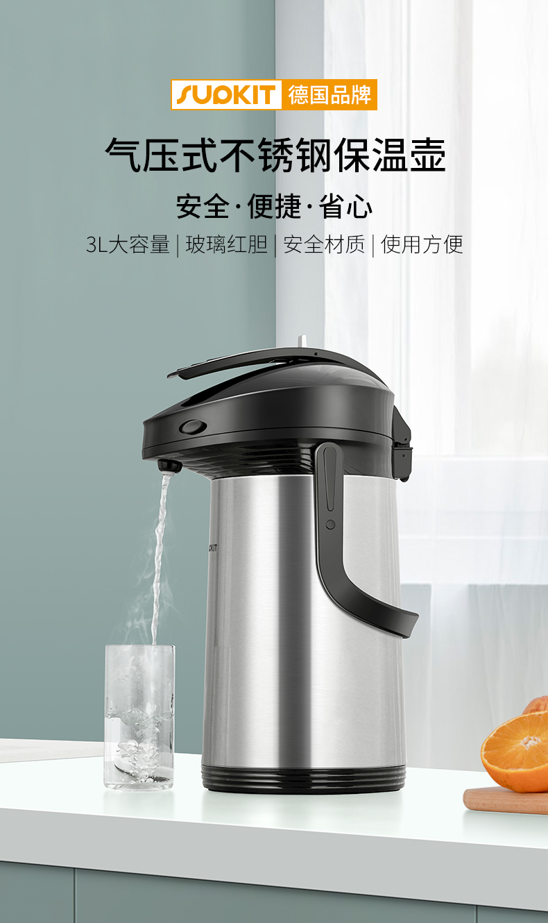 supkit气压式热水瓶家用保温瓶热水壶大容量玻璃内胆按压式暖壶瓶
