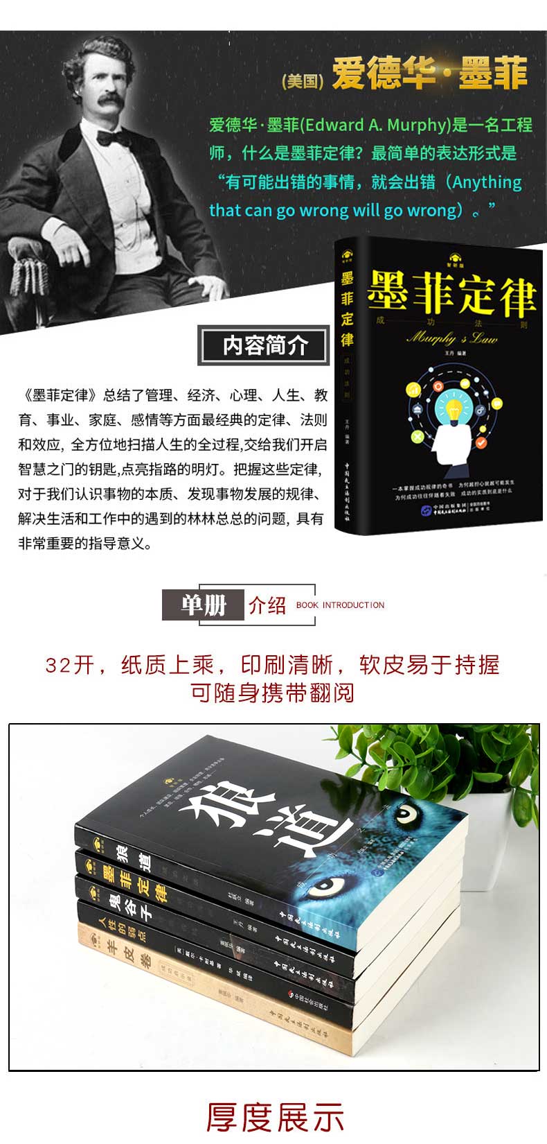 【正版保证】受益一生的五本书 鬼谷子墨菲定律狼道+人性的弱点正版+羊皮卷正版包邮为人处世全集成功励志书籍 畅销书排行榜 抖音