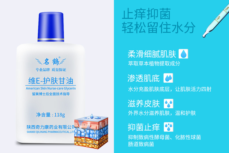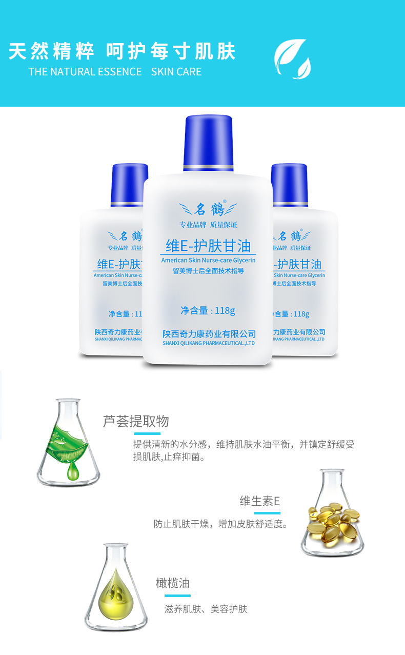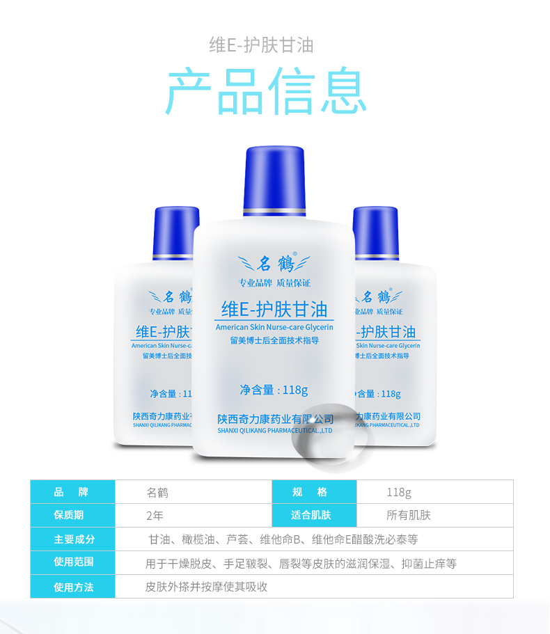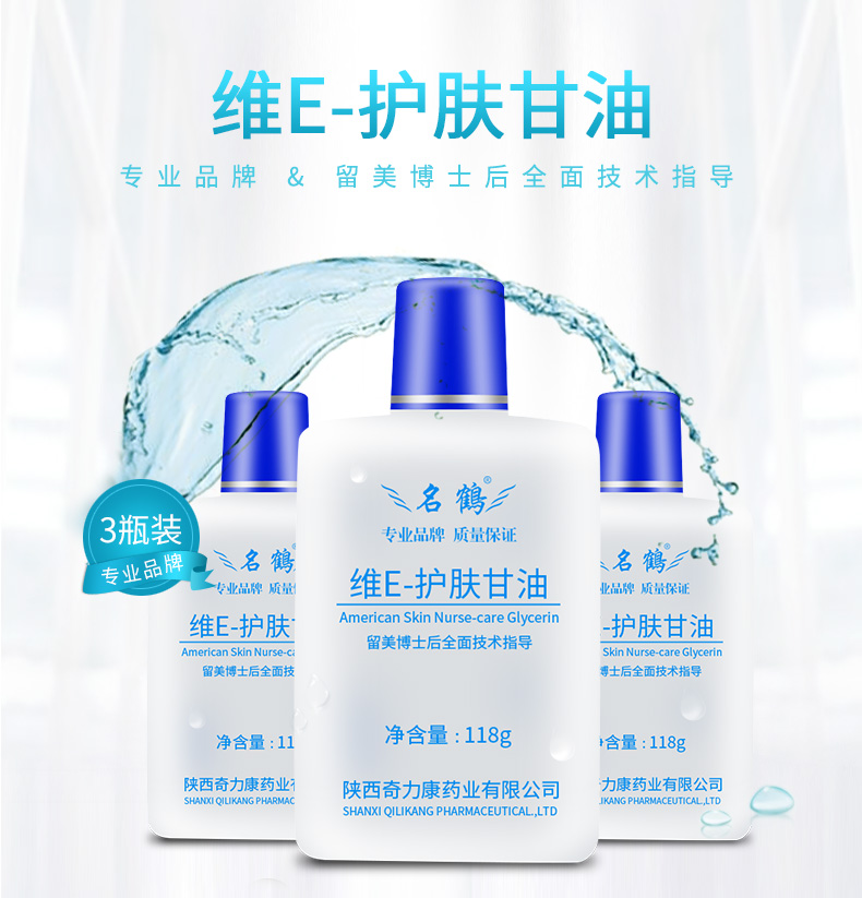 天猫正品,陕西奇力康名鹤维E,护肤甘油3瓶装,保湿补水防干裂美国干油。