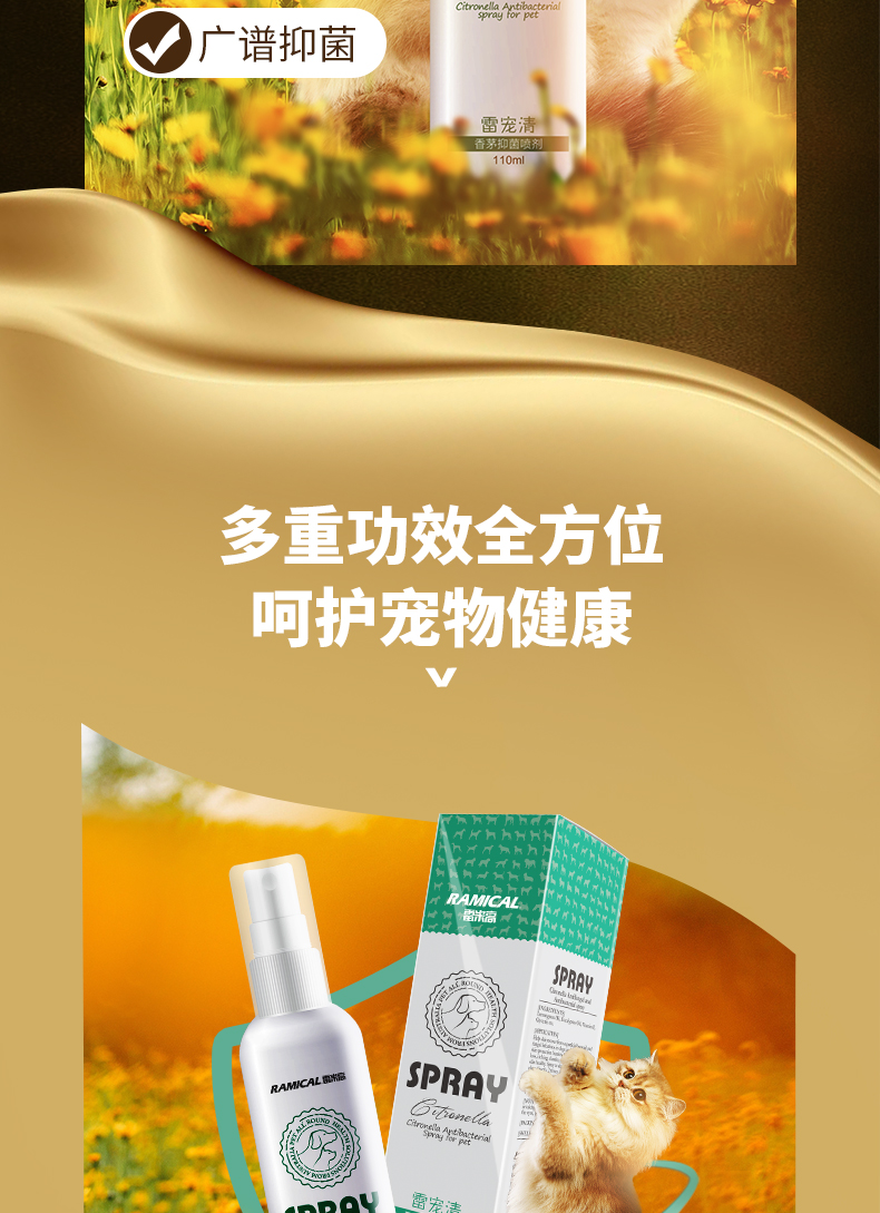 雷宠清狗狗皮肤病喷剂真菌猫癣药宠物猫藓喷雾猫咪去螨虫止痒外用