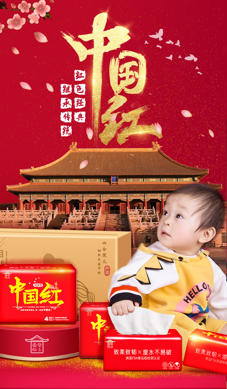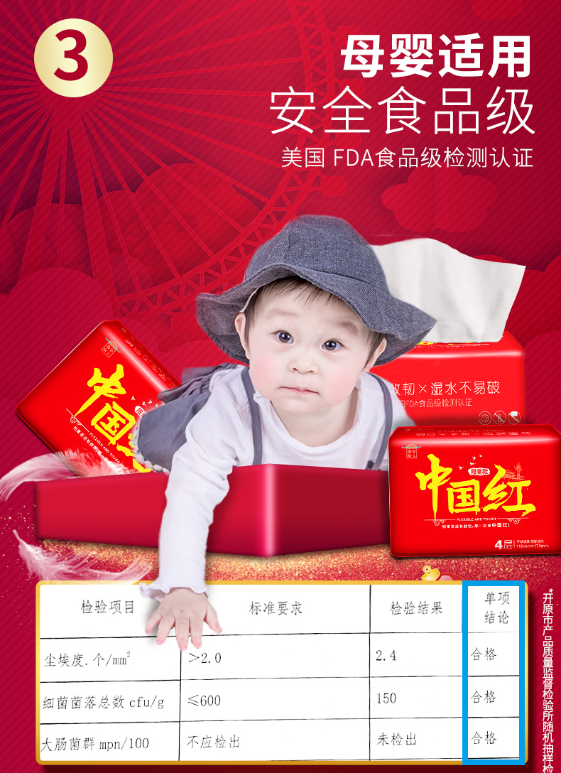 【中国科学院检测,优等品,百分百进口原生木浆】拍2件.四合院儿经典中国红--优等品婴儿抽纸,采用进口原生木浆,美国FDA食品级检测认证,大润发.物美等超市均有铺货【赠运费险】