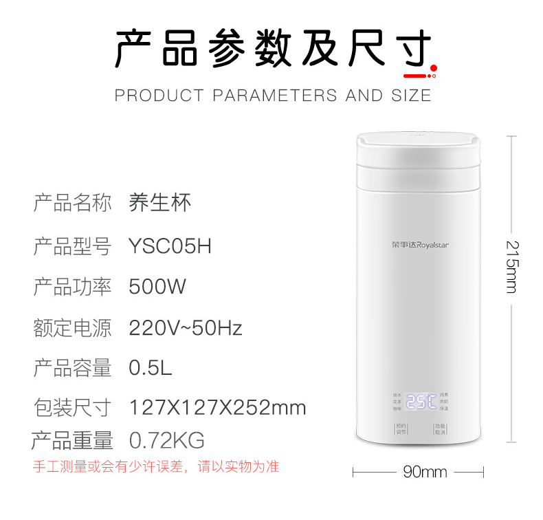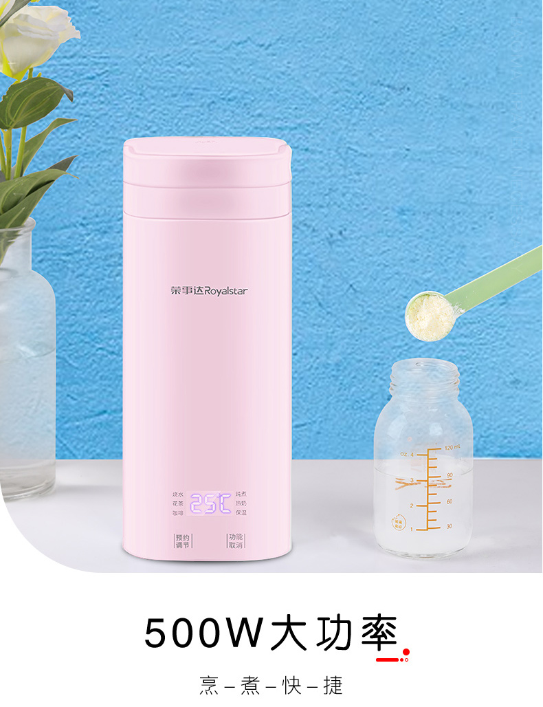 荣事达旅行电热水壶小型便携式电加热水杯煮粥神器迷你电热烧水壶
