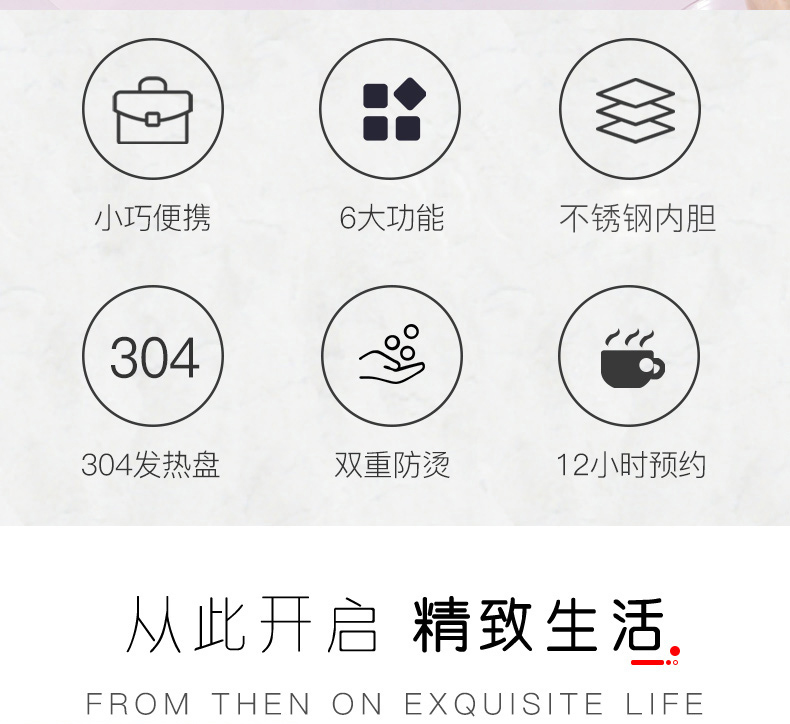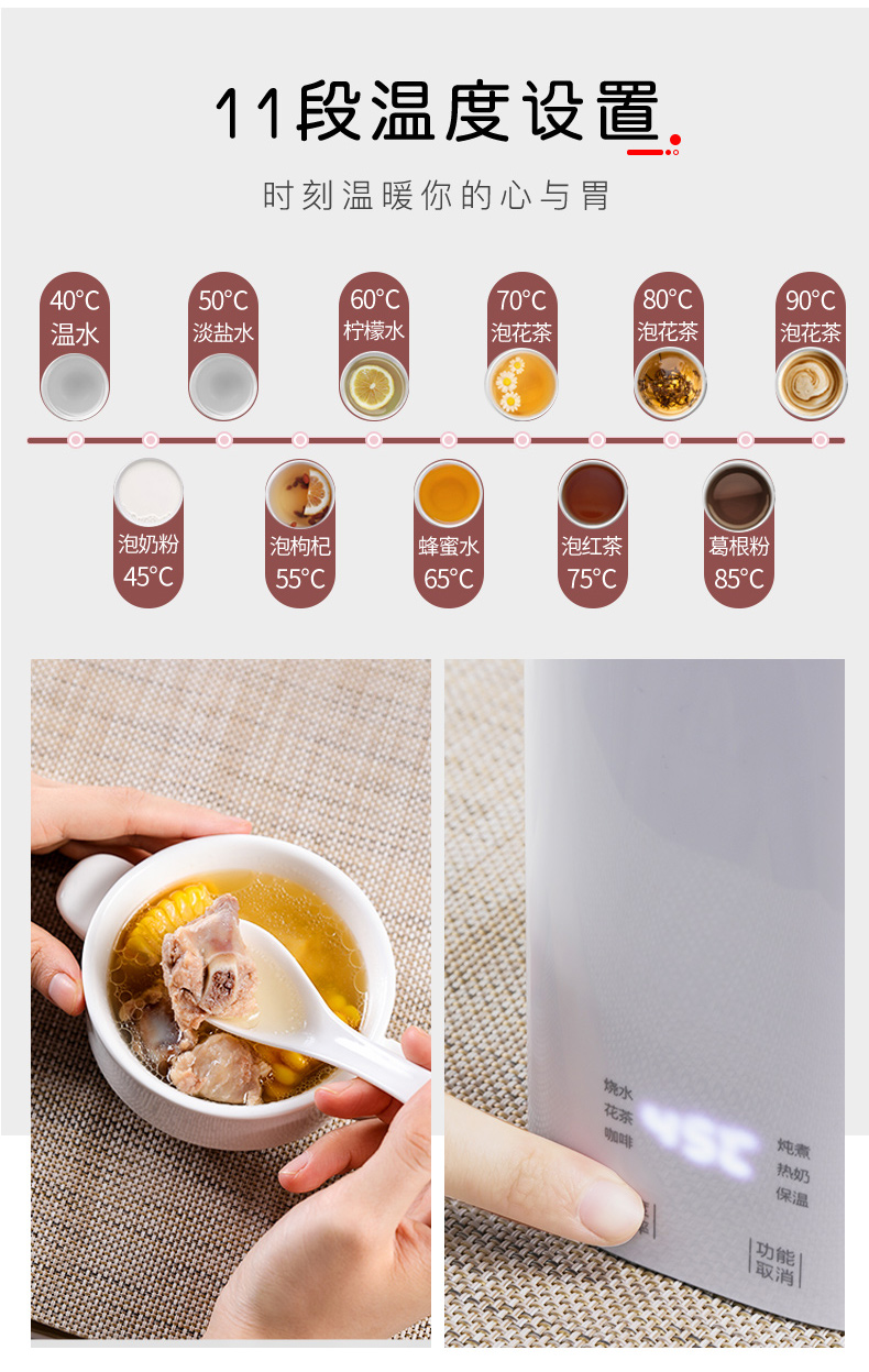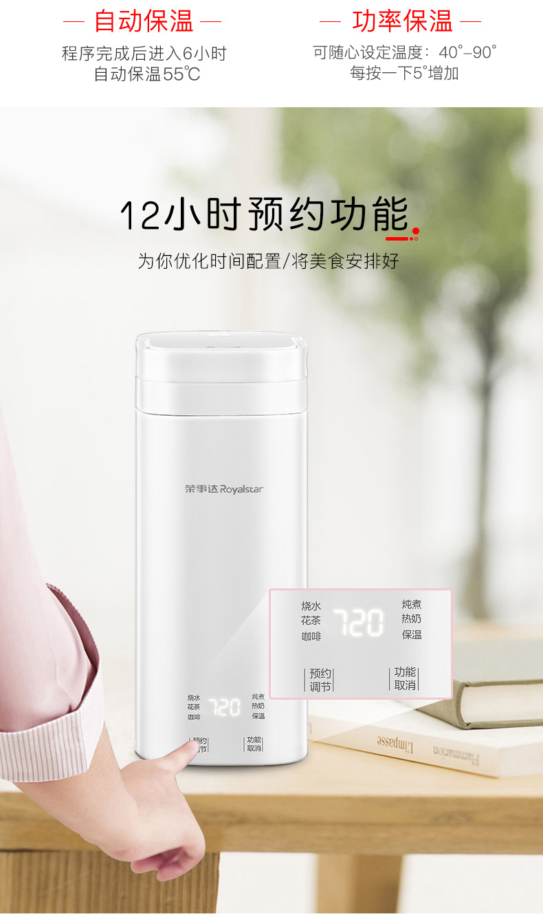 【荣事达品牌】严选304食品级钢内胆,拒绝异味,日式一体壶身设计,轻巧便携,3层防烫工艺,更安全!6大功能,一键式烧水,55度自动保温,工作养生,出差旅行,随手定制你想要的温度【赠送运费险】
