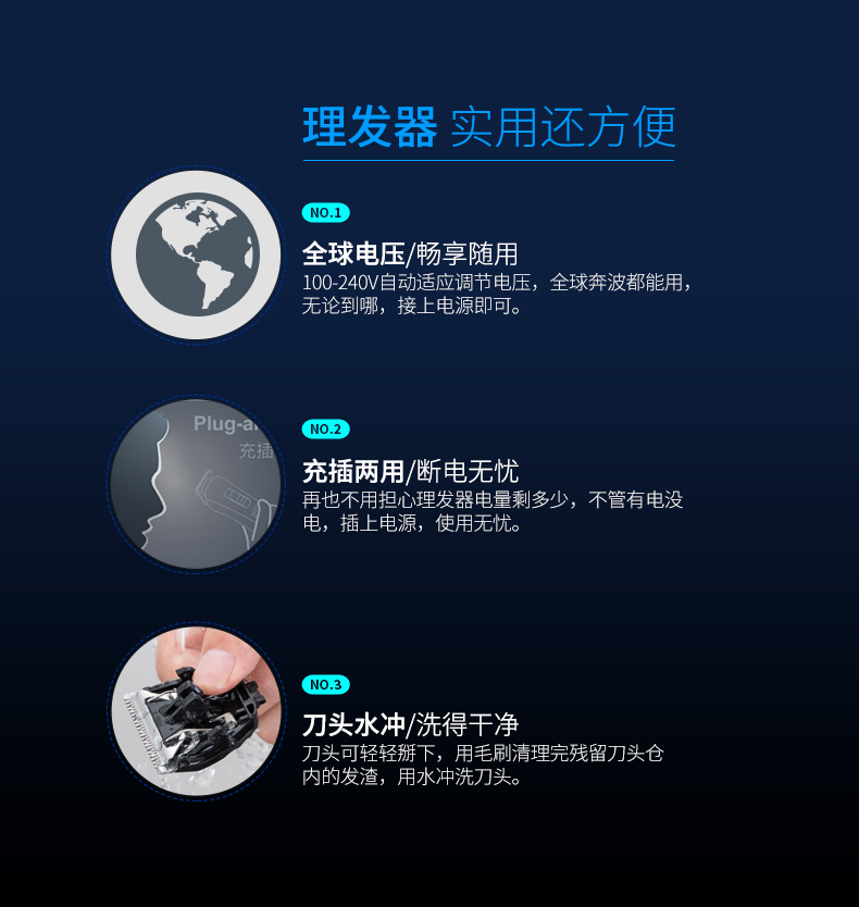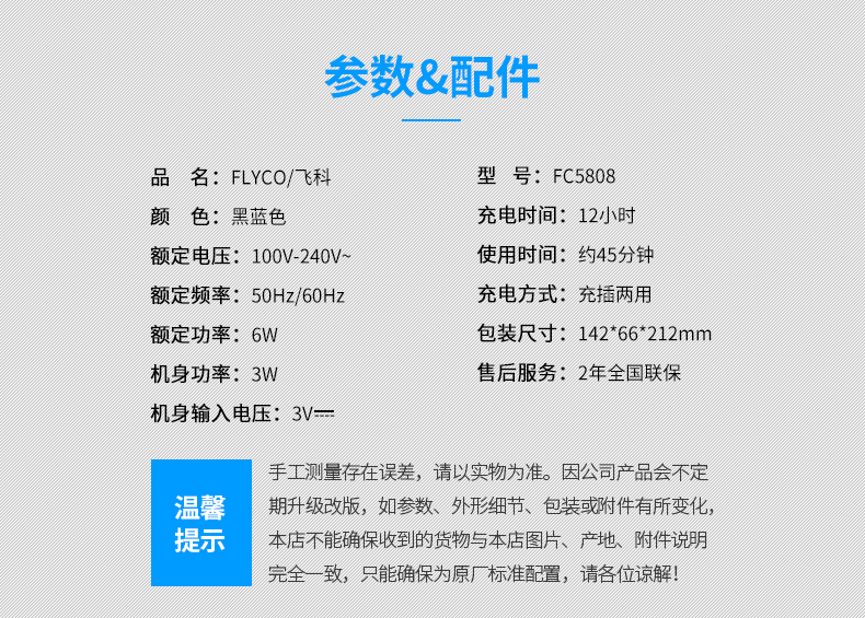 飞科品牌质量保障,手感舒适,静音快充,操作简单,亲肤刀头,便捷安全,不卡发不伤发,在家轻松理发~