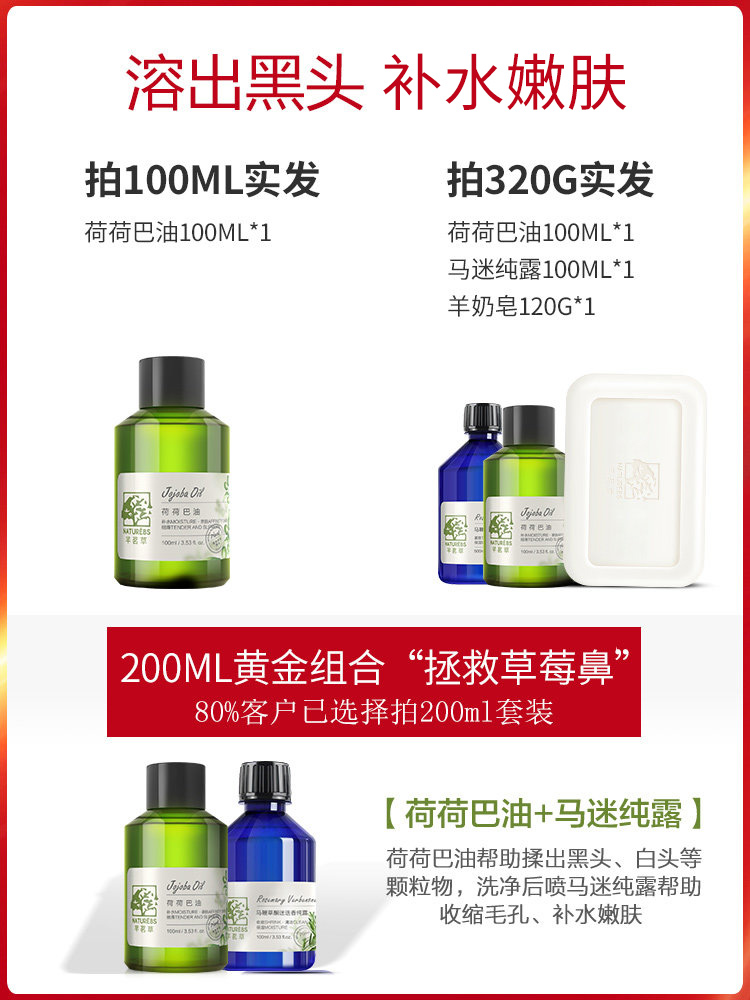 荷荷巴油霍霍巴油淡黑头基础油冷压植物油,祛黑头,溶出黑头,收缩毛孔,补水锁水,畅通清洁毛孔,温和去黑头,让皮肤细嫩柔滑,女人要对自己好一点
