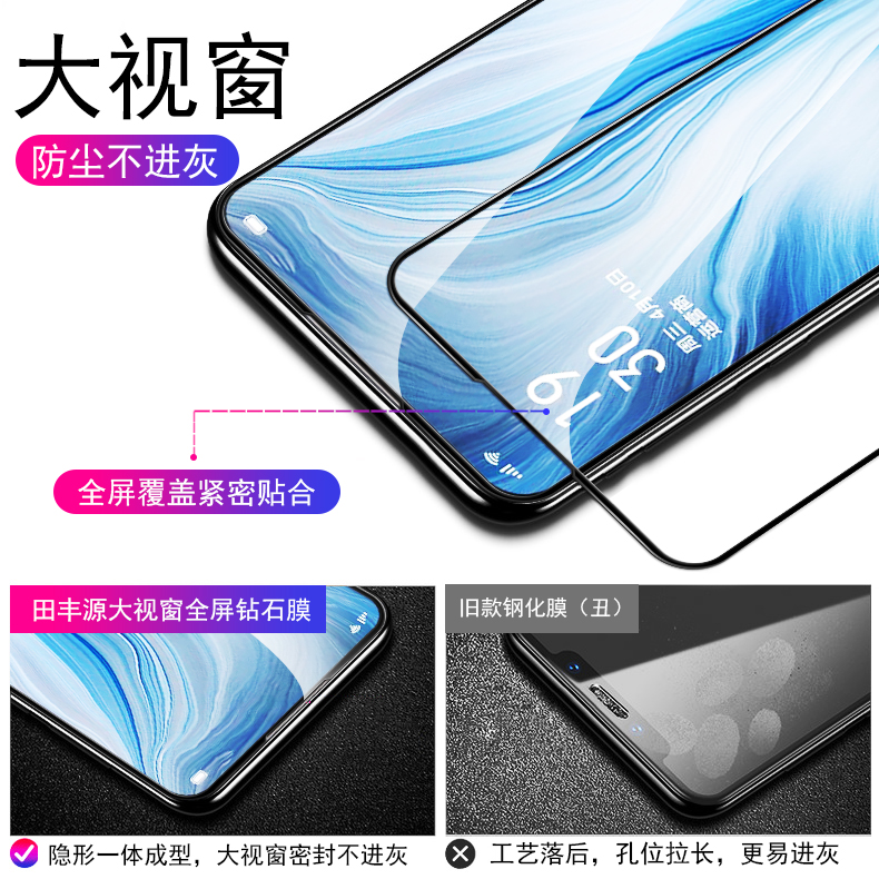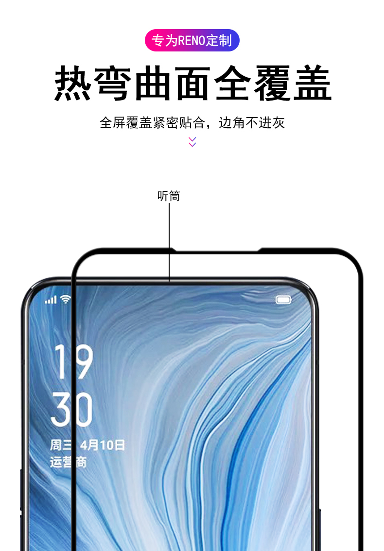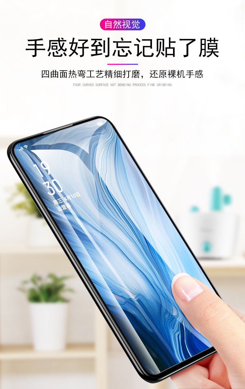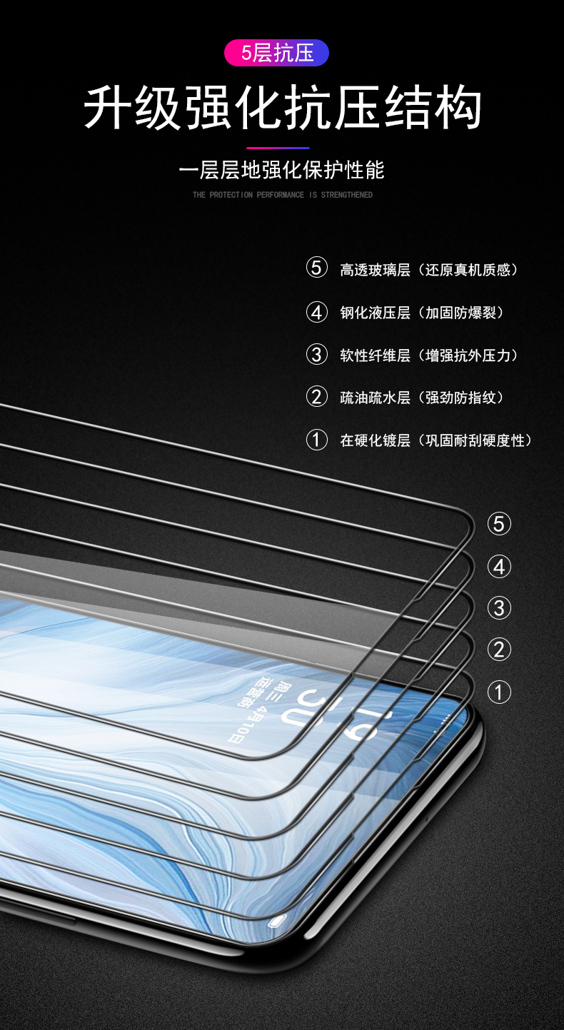 【2片装】opporeno全系列手机型号钢化膜,全屏覆盖全包边,真机1:1开模,还原裸机手感,三倍增强抗指纹,滴水成珠,一抹干净,高清无白边,防爆防刮,不易碎边,完美贴合无缝隙
