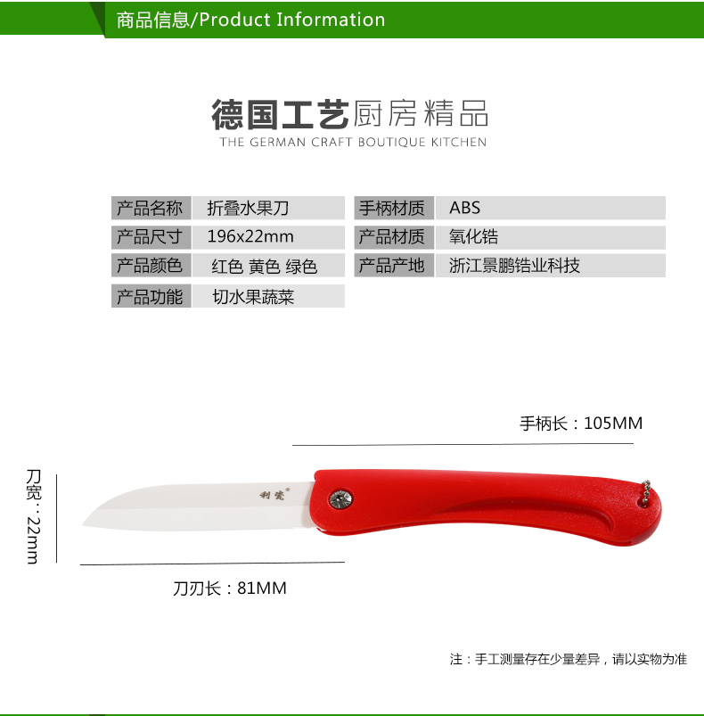 利瓷陶瓷刀折叠刀水果刀瓜果刀削皮刀多功能创意折刀野炊家用刀具