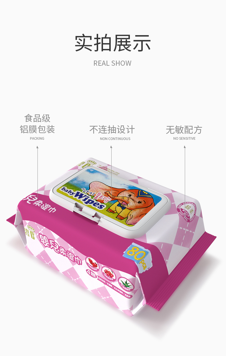 碧c婴儿湿巾手口屁湿纸巾宝宝新生80抽片5包带盖专用100成人批发