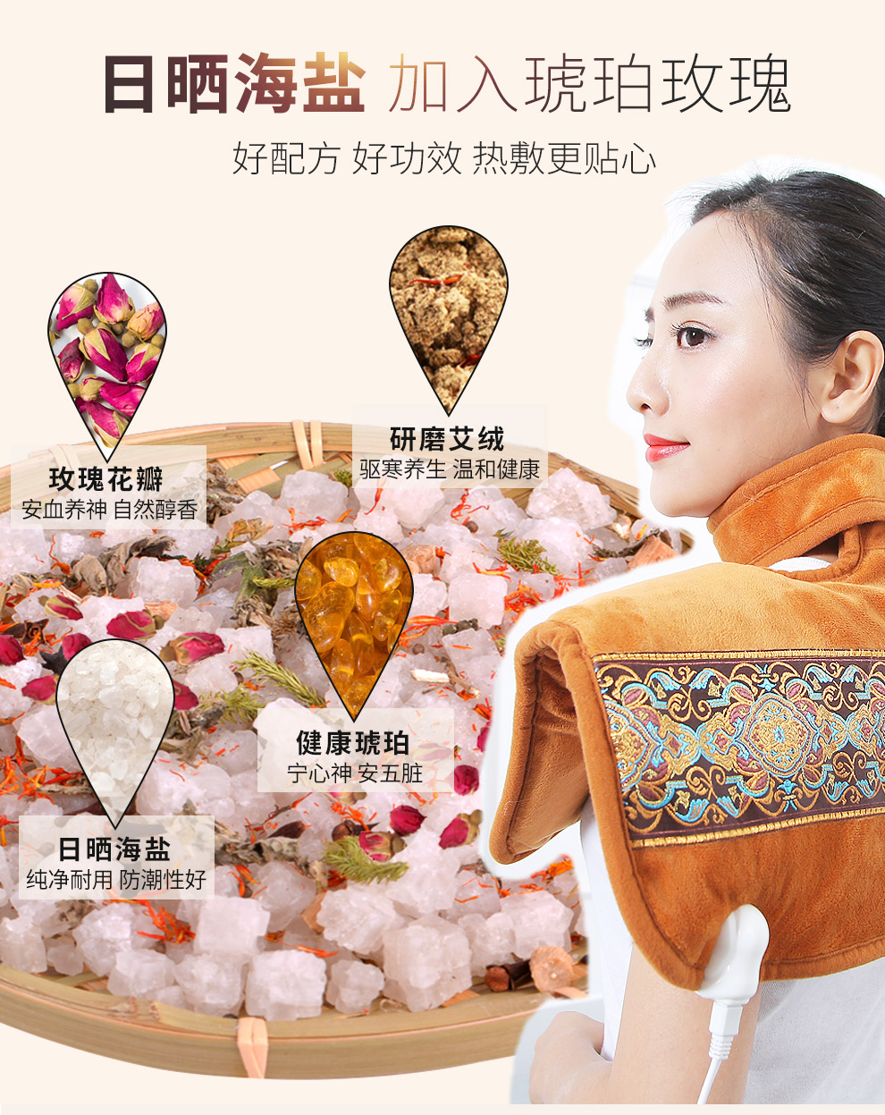 甄选优质日晒海盐,加入琥珀玫瑰,好配方好功效,热敷更贴心!简单易操作,爸妈都会用~
