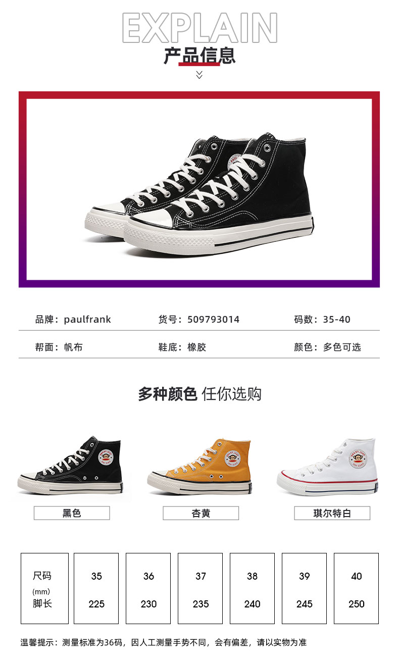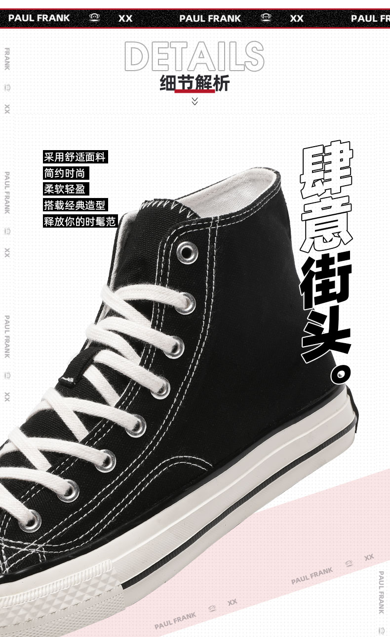 加宽圆头设计,柔韧有弹力,久穿不累脚,透气内里,时刻干爽舒适,简单的版型,这么随意又有型,怎么搭配都好看,你还在等什么,赶紧用帆布鞋来凹出适合你的style吧