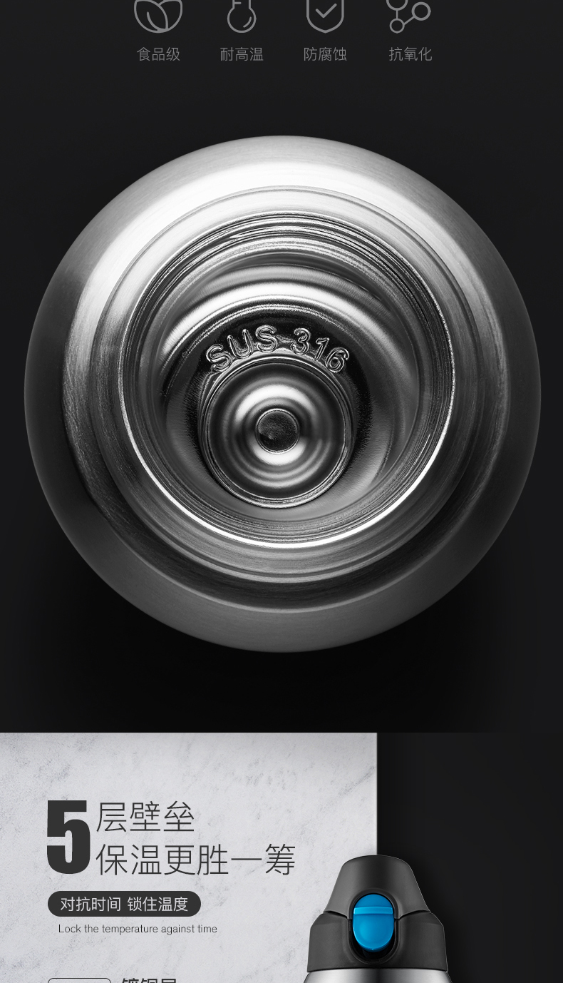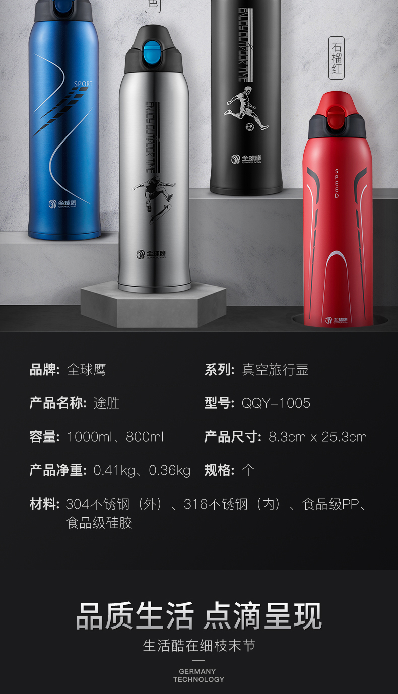 德国保温杯大容量1000ml男女士便携316不锈钢大号运动水壶杯子