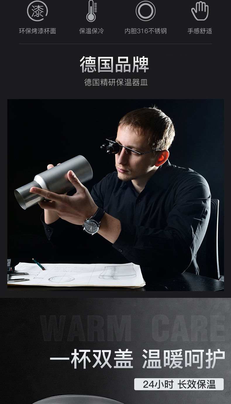 源自德国进口,纯净细腻,品茗喝茶,白瓷,外层304不锈钢包裹,坚固耐用,商务人士~