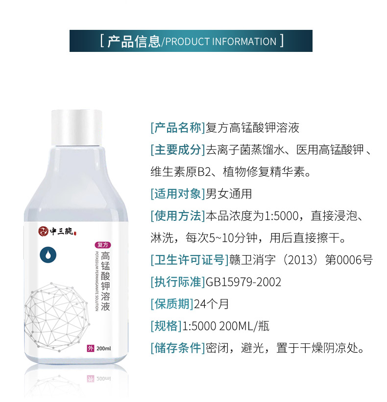【中三院】医用男女士私处护理高猛酸钾洗液,高锰酸钾溶液私处洗液,有效清洁护理私处,抑菌杀菌,关爱有加!医用级别,更安全,更全面,更安心。