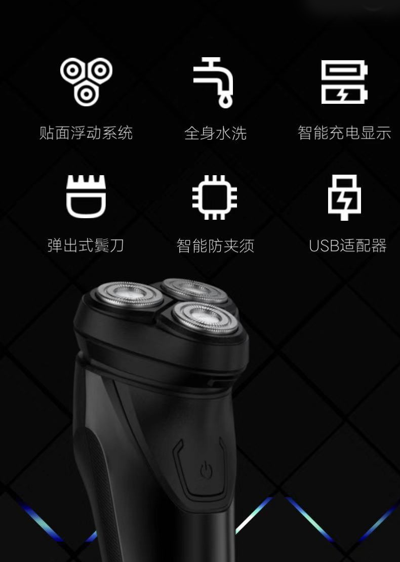 新品上市,专柜正品,全身水洗,USB智能充电接口,大功率,三刀头全方位浮动,一年包换新机,两年全国联保