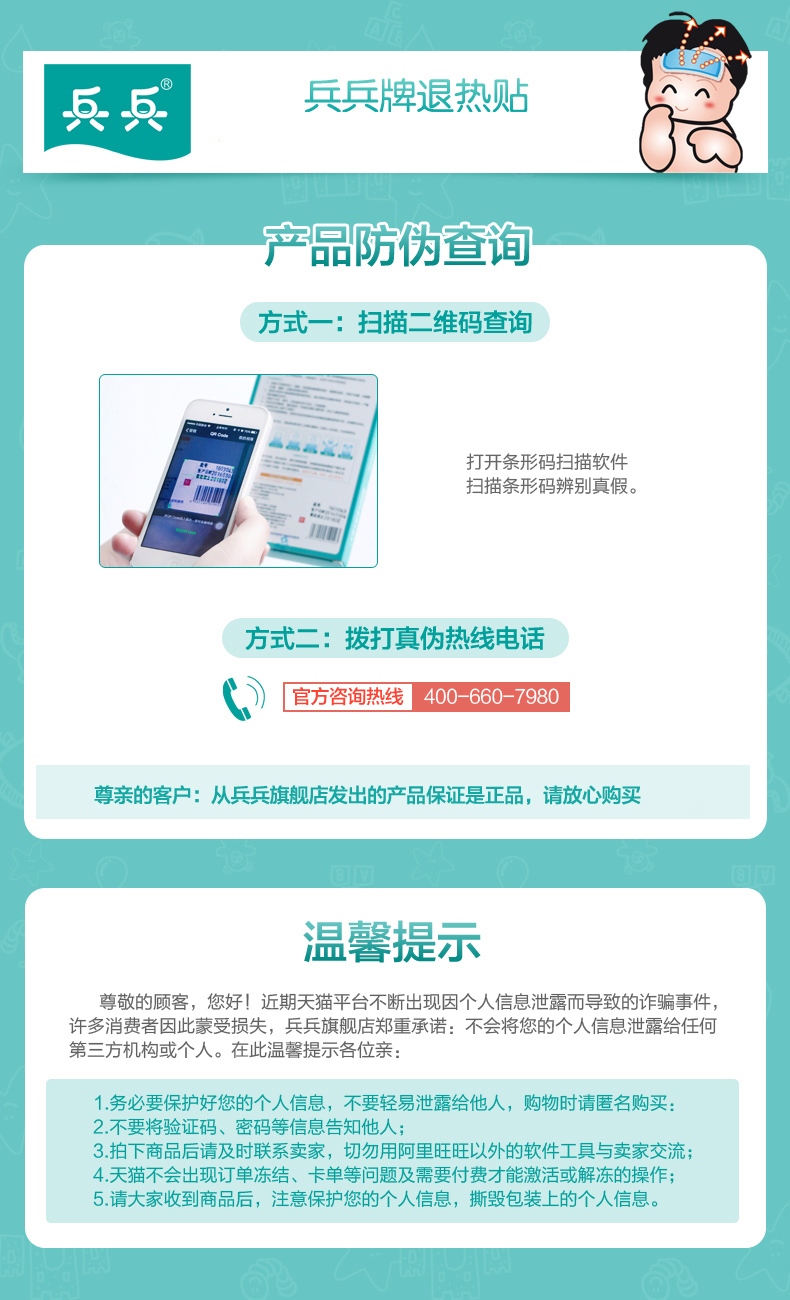 兵兵官方正品小儿退热贴婴幼儿贴儿童降温贴宝宝退烧贴6+3片