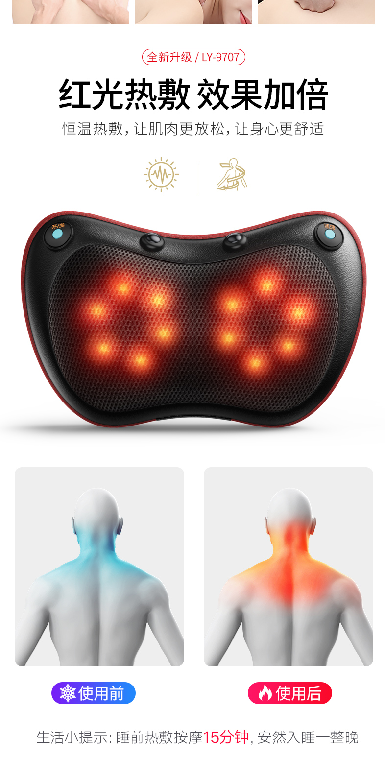 【一款可以躺坐两用的多功能全身按摩枕!车家两用!】红外线理疗方式,仿真人轻重揉捏指压手法,车上家里都能用,给您*舒适的体验,快给爸妈、长辈买一个吧,爱别等,孝别迟,送礼就送健康,适合久坐人群