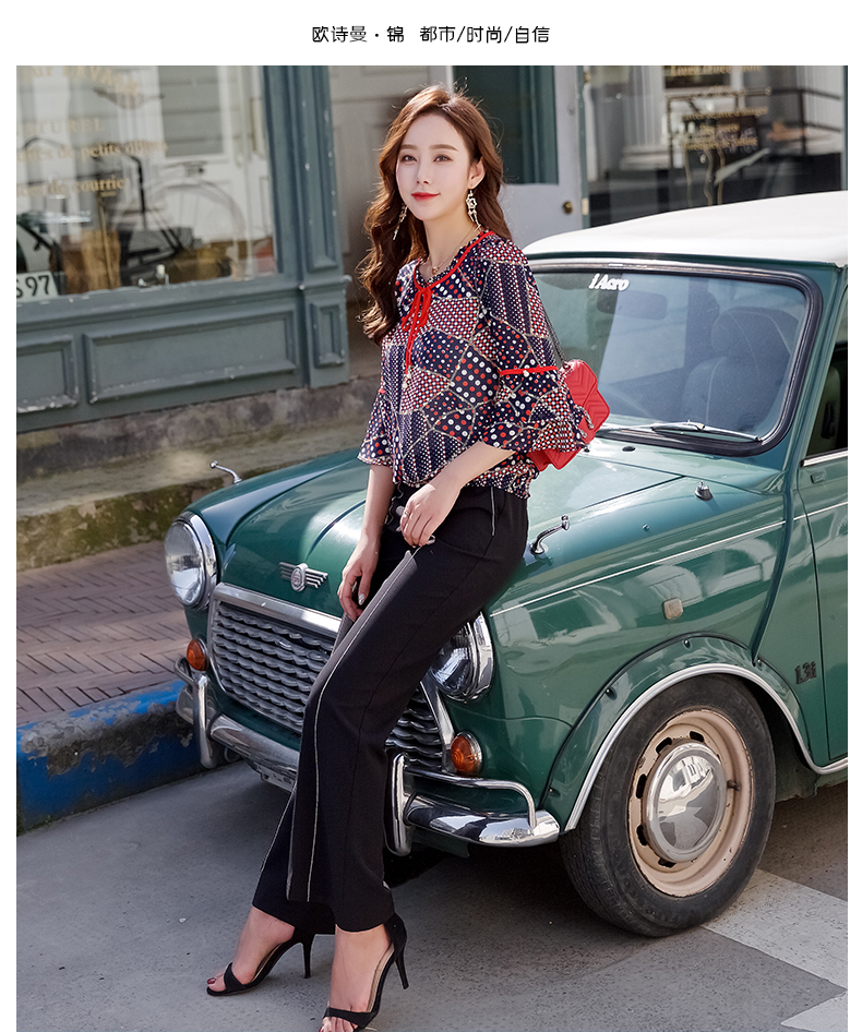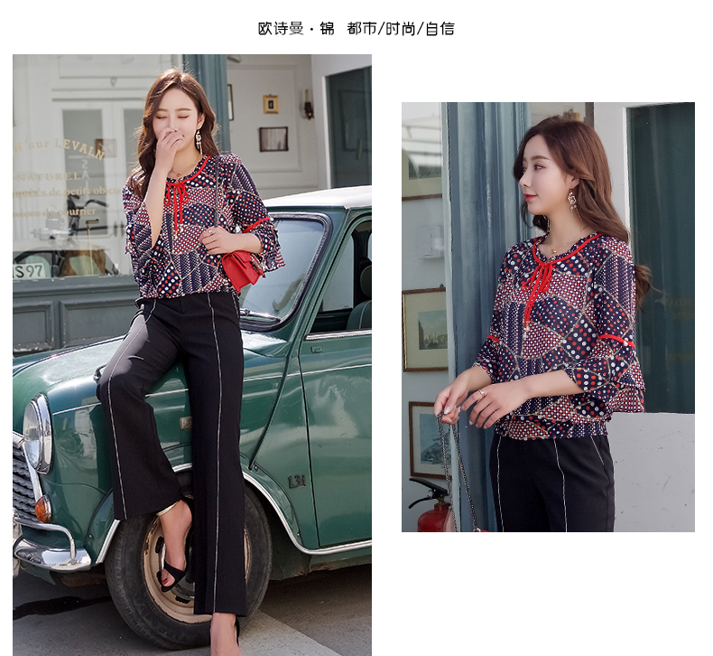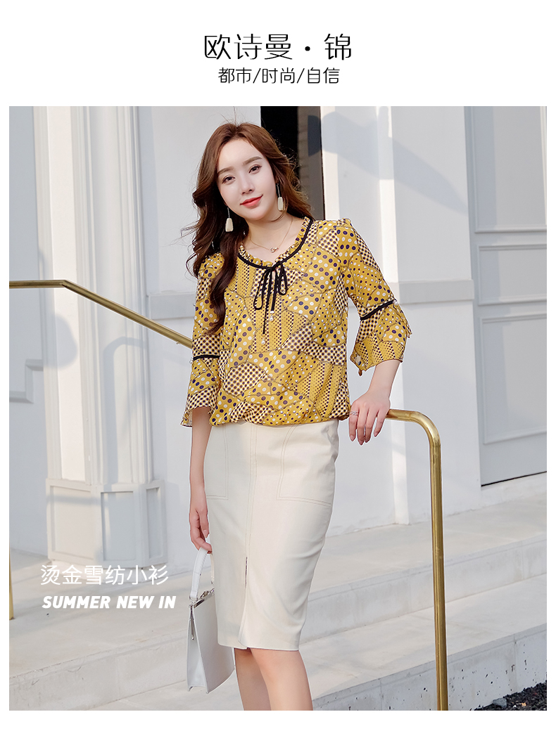 欧诗曼锦烫金雪纺小衫,精选舒适亲肤面料,手感柔软,做工精细,时尚都市风格,气质优雅。