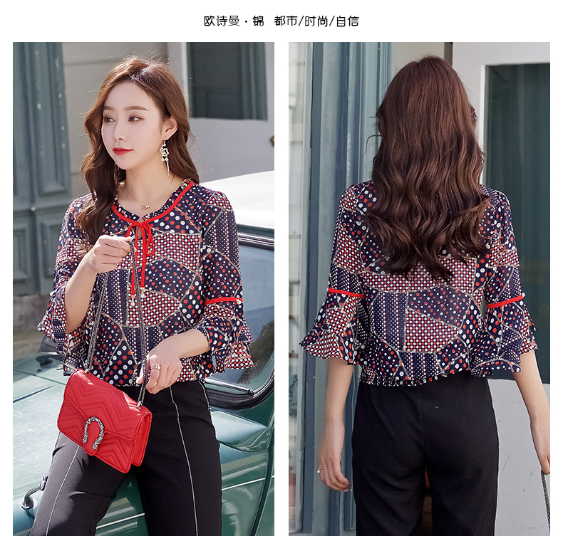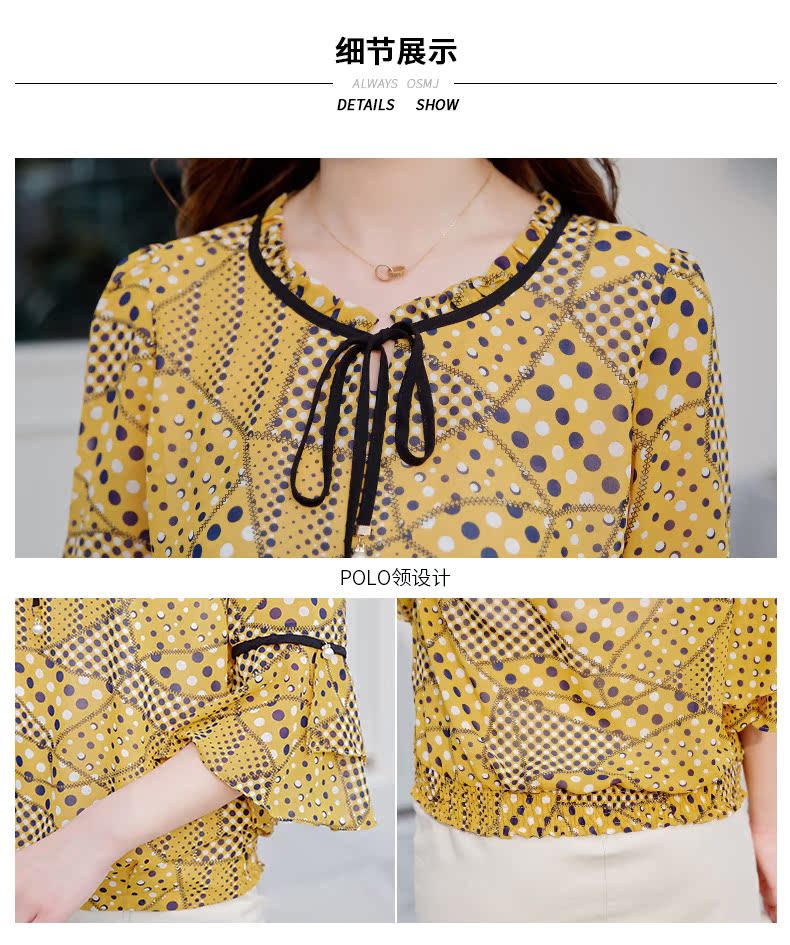 欧诗曼锦2019夏季新款波点雪纺衫女士小衫显瘦上衣薄款潮