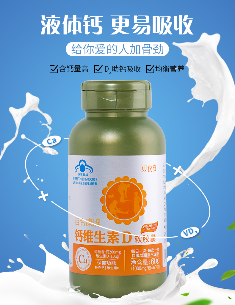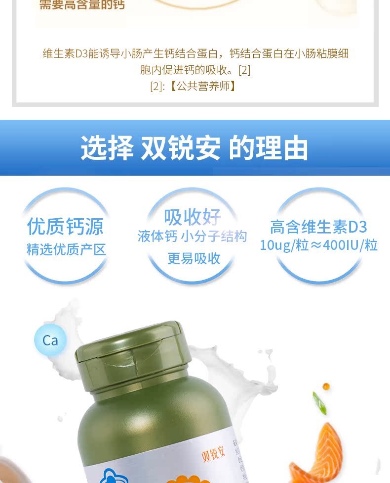 双锐安钙维生素D3胶囊,青少年补钙中老年女性液体钙,中性钙无刺激不上火,添加维生素D3高效吸收钙,针对国人体质研发营养刚刚好,国家蓝帽子认证安全放心~