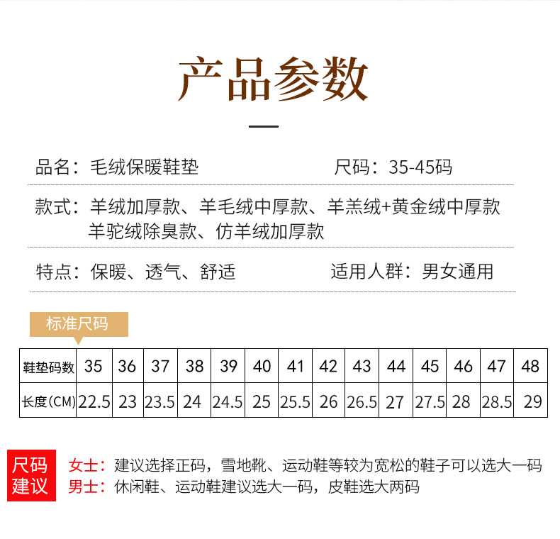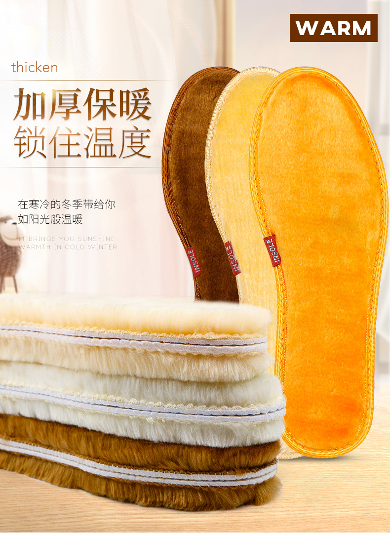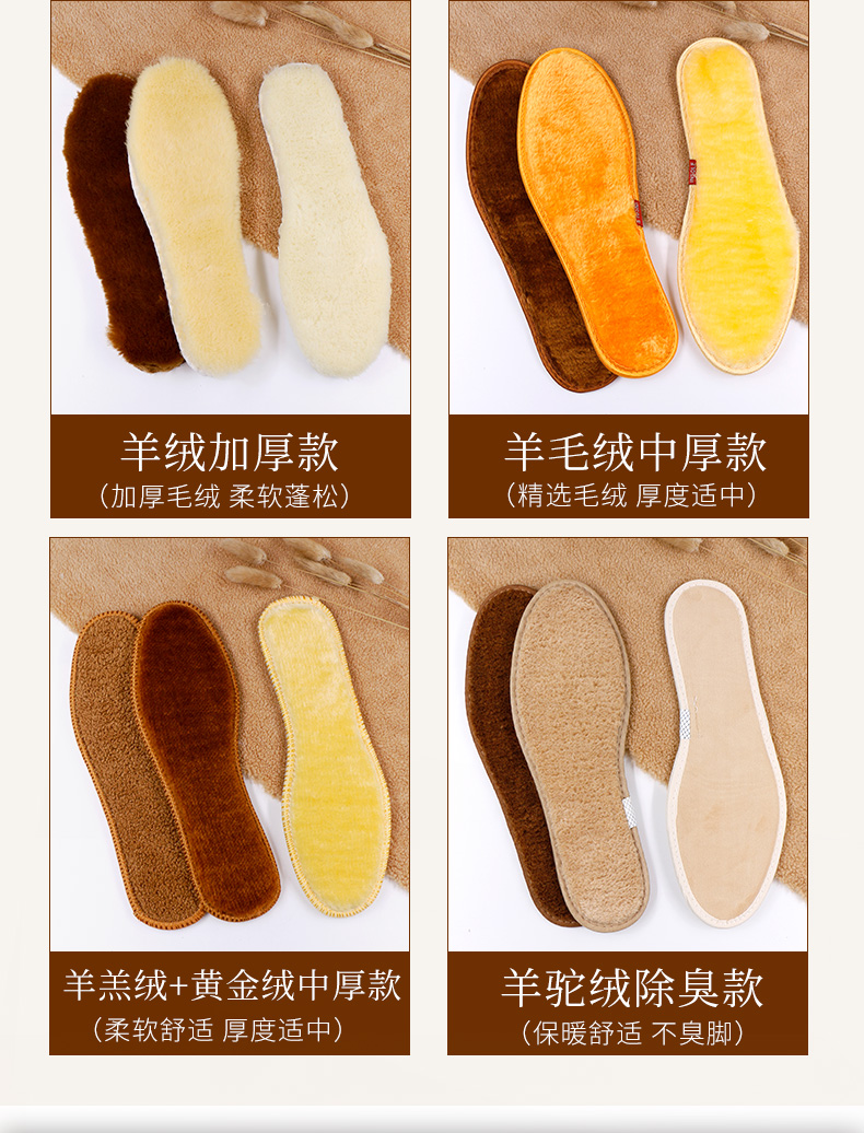 鞋垫冬季加绒加厚男女士毛绒棉鞋垫保暖鞋垫软底舒适防寒防臭羊毛