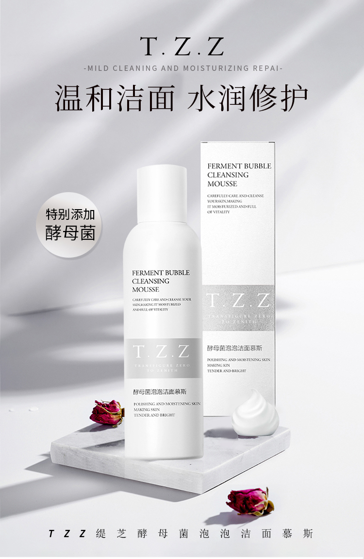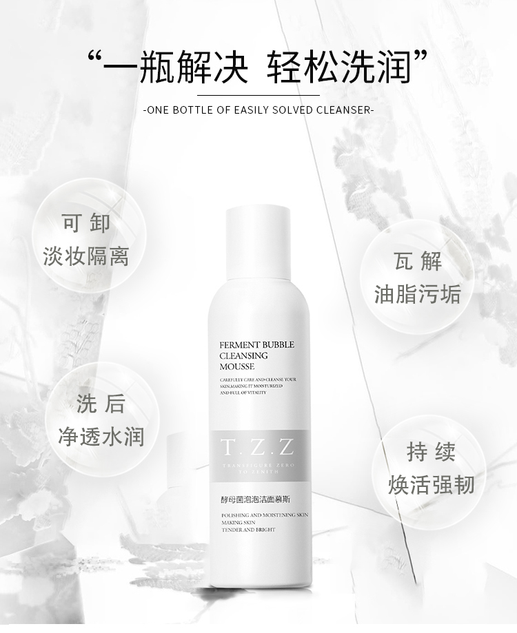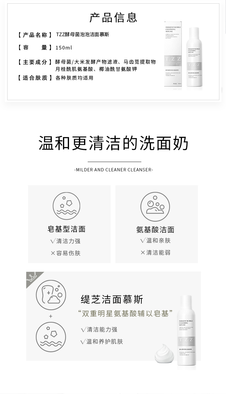 TZZ缇芝酵母菌泡泡洁面慕斯150ml温和深层清洁泡沫氨基酸洗面奶女