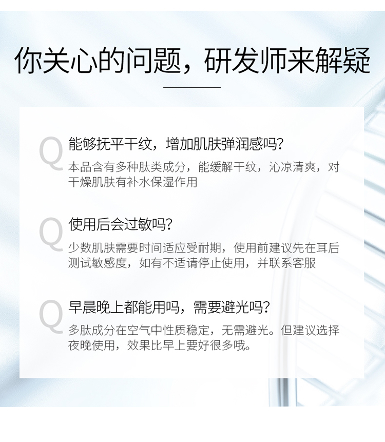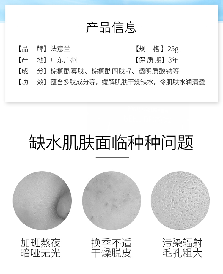 肌肤保持水润状态,有效抵御外界侵袭,肌肤光泽有弹性,舒缓泛红、帮助脆弱、不适的肌肤达到理想的状态【尤其适用容易过敏的肤质】