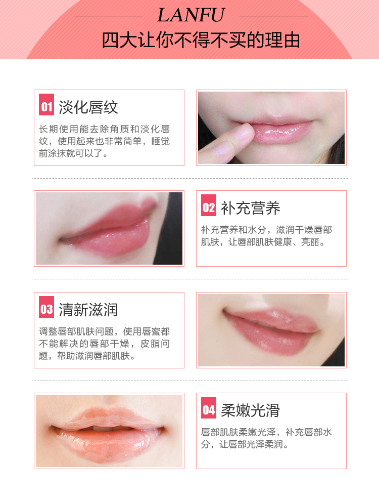 兰芙唇膜保湿滋润补水去死皮角质唇部护理淡化唇纹夜间睡眠润唇膏
