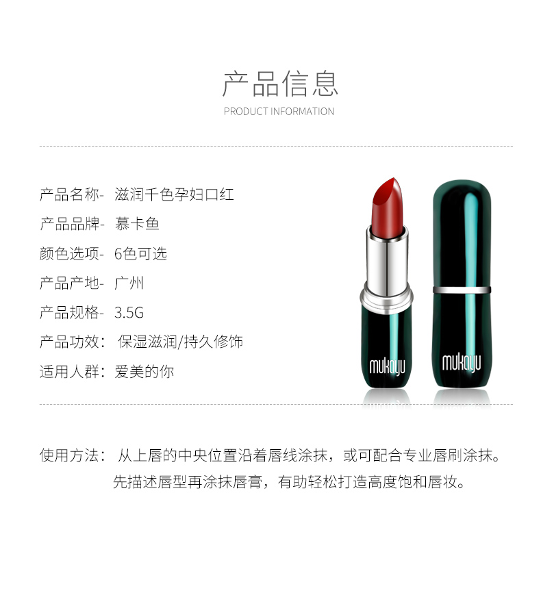 【英国慕卡鱼专柜】孕期也要美美哒~孕妇专用口红,天然食物提取,滋润保湿,涂抹更安心,上妆持久不易掉色,打造宝妈们的专属唇妆