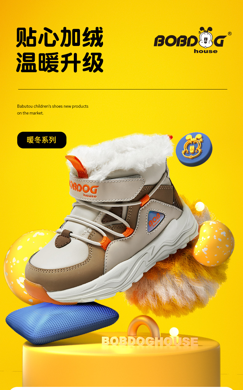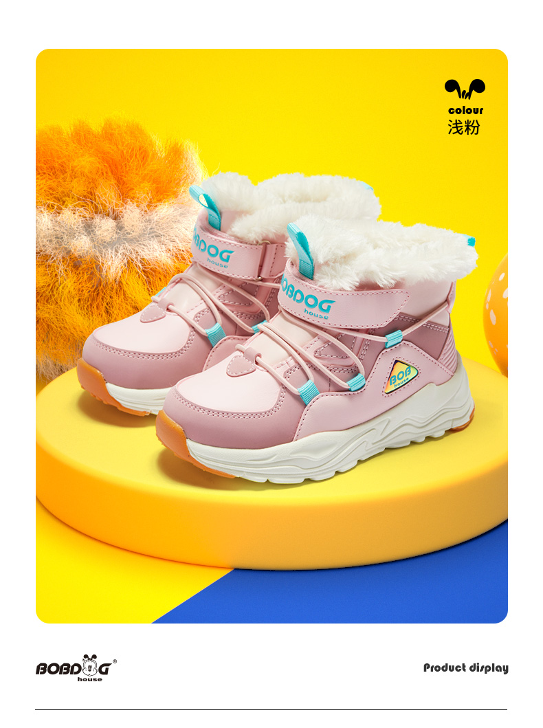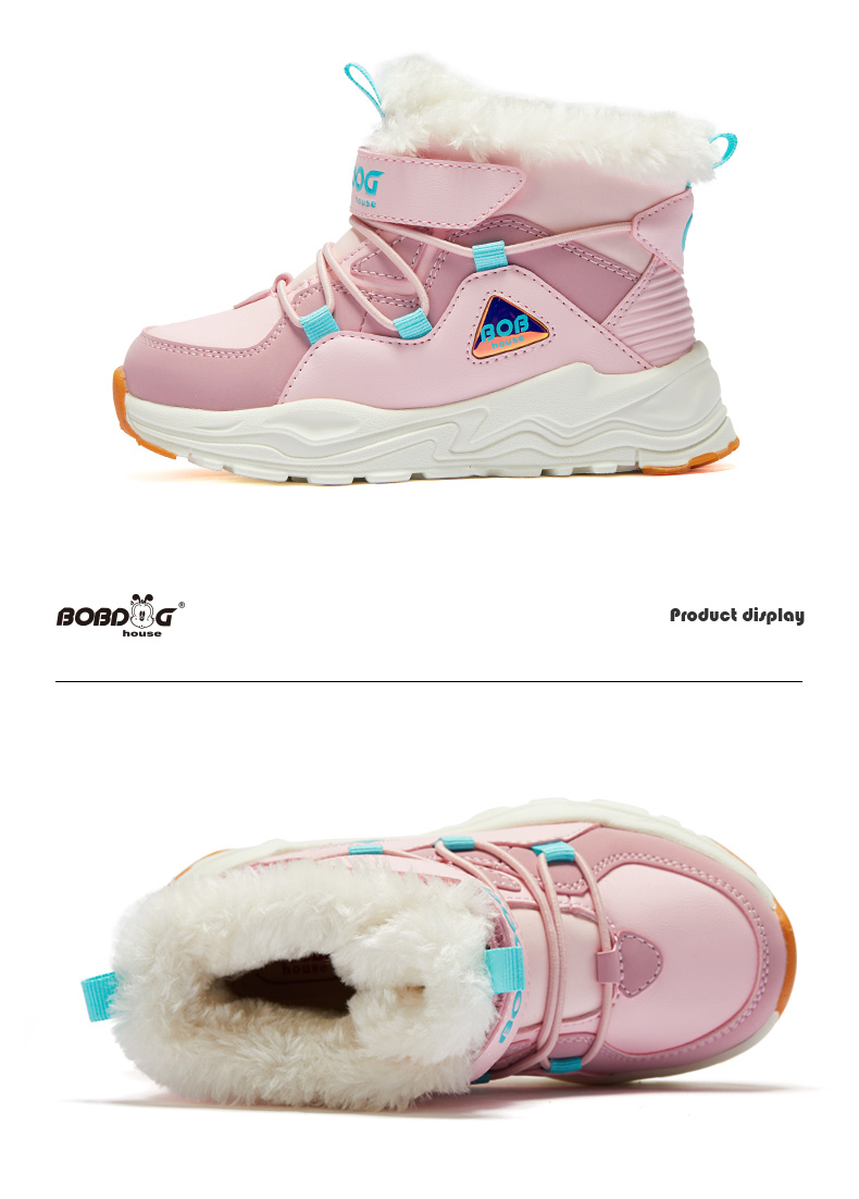 巴布豆童鞋儿童雪地靴2019冬季新款男童女童加绒加厚宝宝二棉鞋